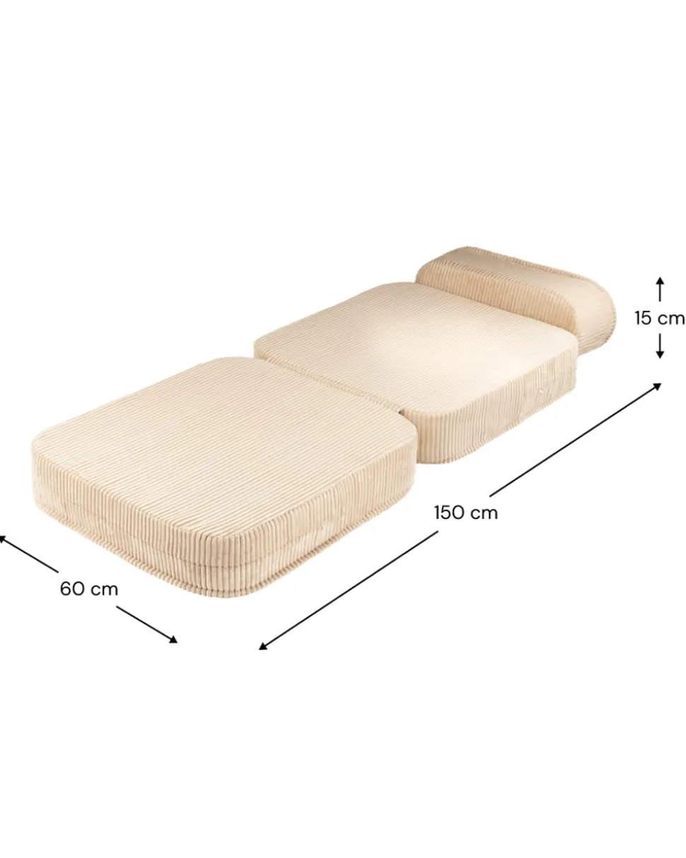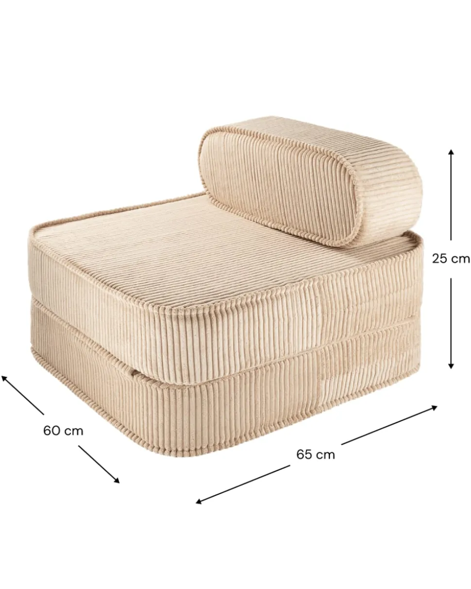 Der Flip Chair von wurde mit Blick auf die Bedürfnisse und den Spieltrieb von Kindern entwickelt. Der weiche Kord-Loungesessel verbindet Funktionalität mit Ästhetik und dient sowohl als bequemer Sessel als auch als ausklappbare Matratze. Der einladende Stoff und die weiche Polsterung schaffen einen gemütlichen Platz zum Lesen, Entspannen oder um sich mit Freunden zu treffen. Das durchdachte Design macht es den Kindern leicht, die Form des Stuhls selbst zu verändern, und die abgerundeten Kanten sorgen für ein selbstbewusstes Aussehen. Flip Chair ist in mehreren Farben erhältlich, die sich leicht mit verschiedenen Inneneinrichtungen kombinieren lassen.
