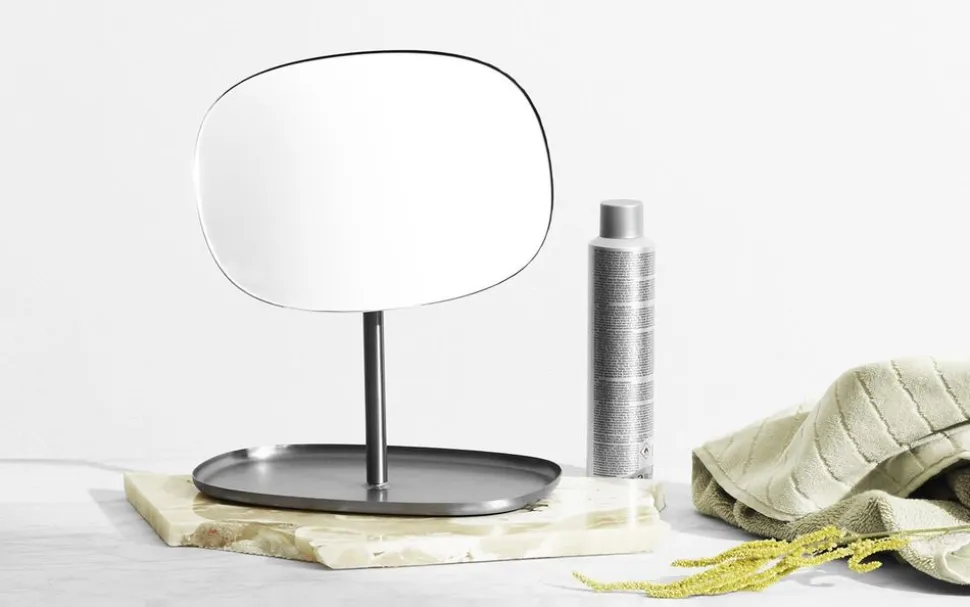 Einen einzelnen Spiegel zu kreieren, der mehr zu bieten hat, war die Ambition des spanischen Javier Moreno Studios, das hinter Flip steht. Die Inspiration stammt vom traditionellen Schminktisch, auf dem man sowohl sein Aussehen überprüfen als auch eine Sammlung von Kleinigkeiten aufbewahren kann, die man gerne zur Hand hat, bevor man das Haus verlässt. Der Spiegel ist oft da, man schaut kurz bevor man aus der Tür geht, also warum ihn nicht dort lassen, man hat die letzten Dinge, die man braucht, wenn man fertig ist oder daran denkt, sie mitzunehmen, bevor man das Haus verlässt.