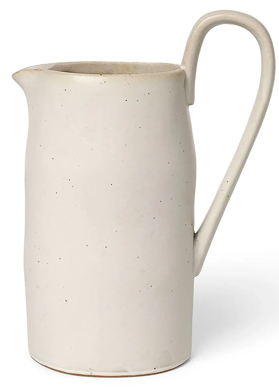 Die schönen Krüge sind mit traditionellen Handwerkstechniken im modernen Stil erstellt. Alle Elemente sind mit einer halbmatten Glasur verziert, um einen einzigartigen Look zu erzielen. Der ansonsten klassische Krug hat einen charakteristischen, länglichen Henkel, der ihn zu einem unverwechselbaren Element auf jedem gedeckten Tisch macht.