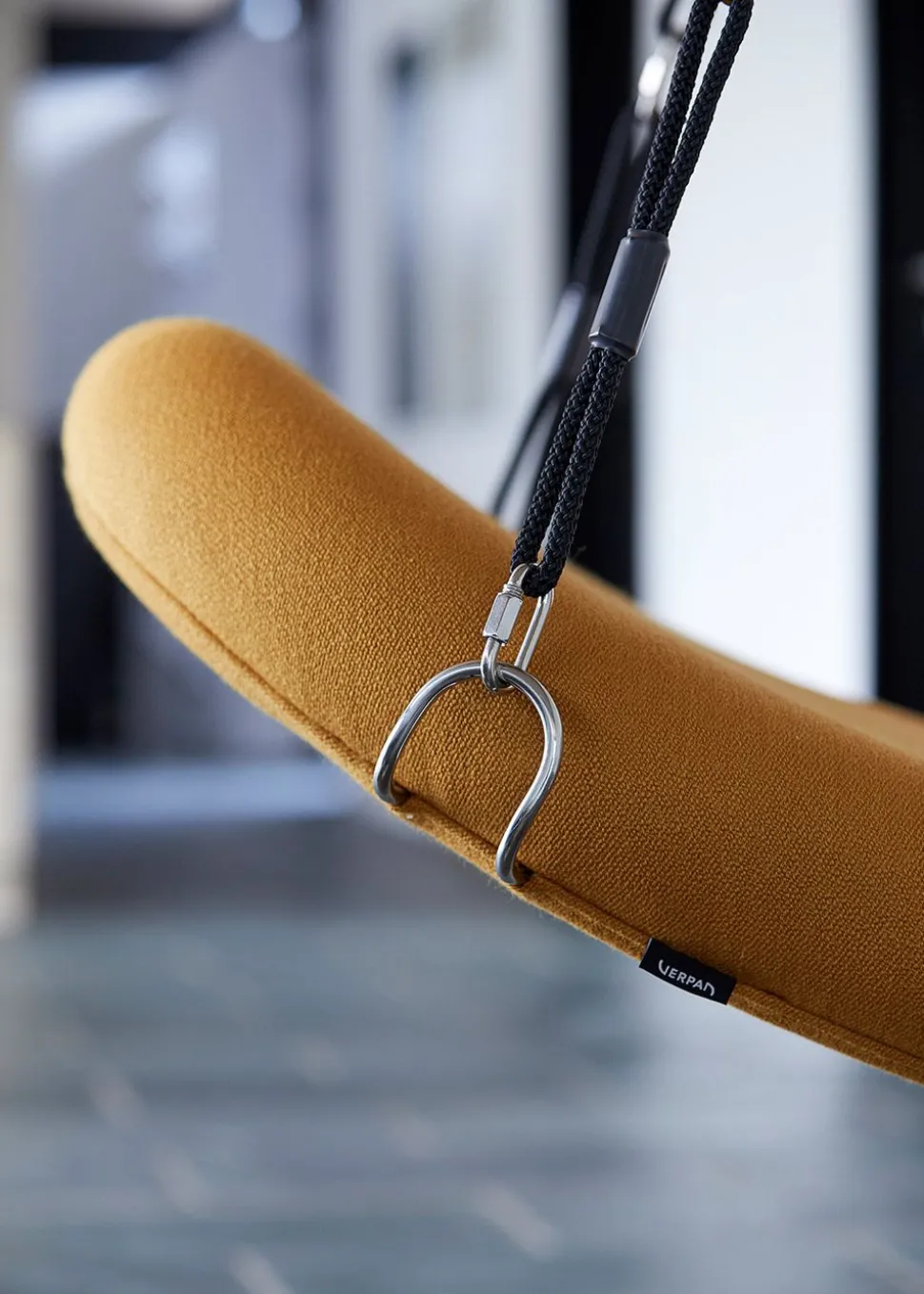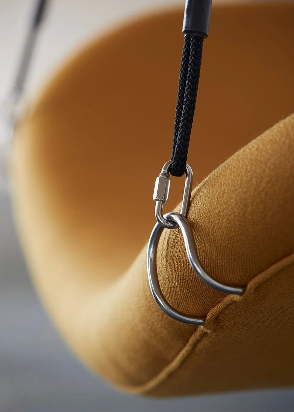 Flying Chair wurde 1964 von entworfen. Der Stuhl besteht aus formgepresstem Sperrholz mit einem Tragrahmen aus Stahl. Es ist alles von PU-Schaum umgeben. Die Seile sind aus Polyester mit Stahlbeschlägen gefertigt.