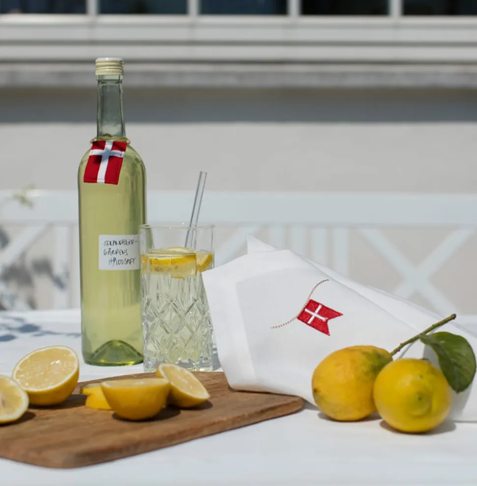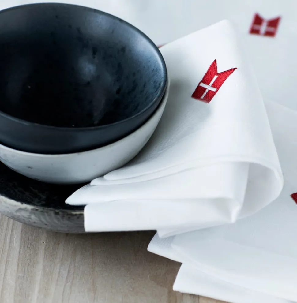 Schöne weiße Stoffserviette mit gestickter dänischer Flagge. Die Serviette ist sehr haltbar und kann immer wieder verwendet werden. Durch das klassische Design passt er auf jeden Geburtstagstisch. Die Stoffserviette ist Teil der klassischen Nordic Way of Celebration-Serie von Langkilde & Søn mit hochwertigen Stofftischdecken und -servietten.