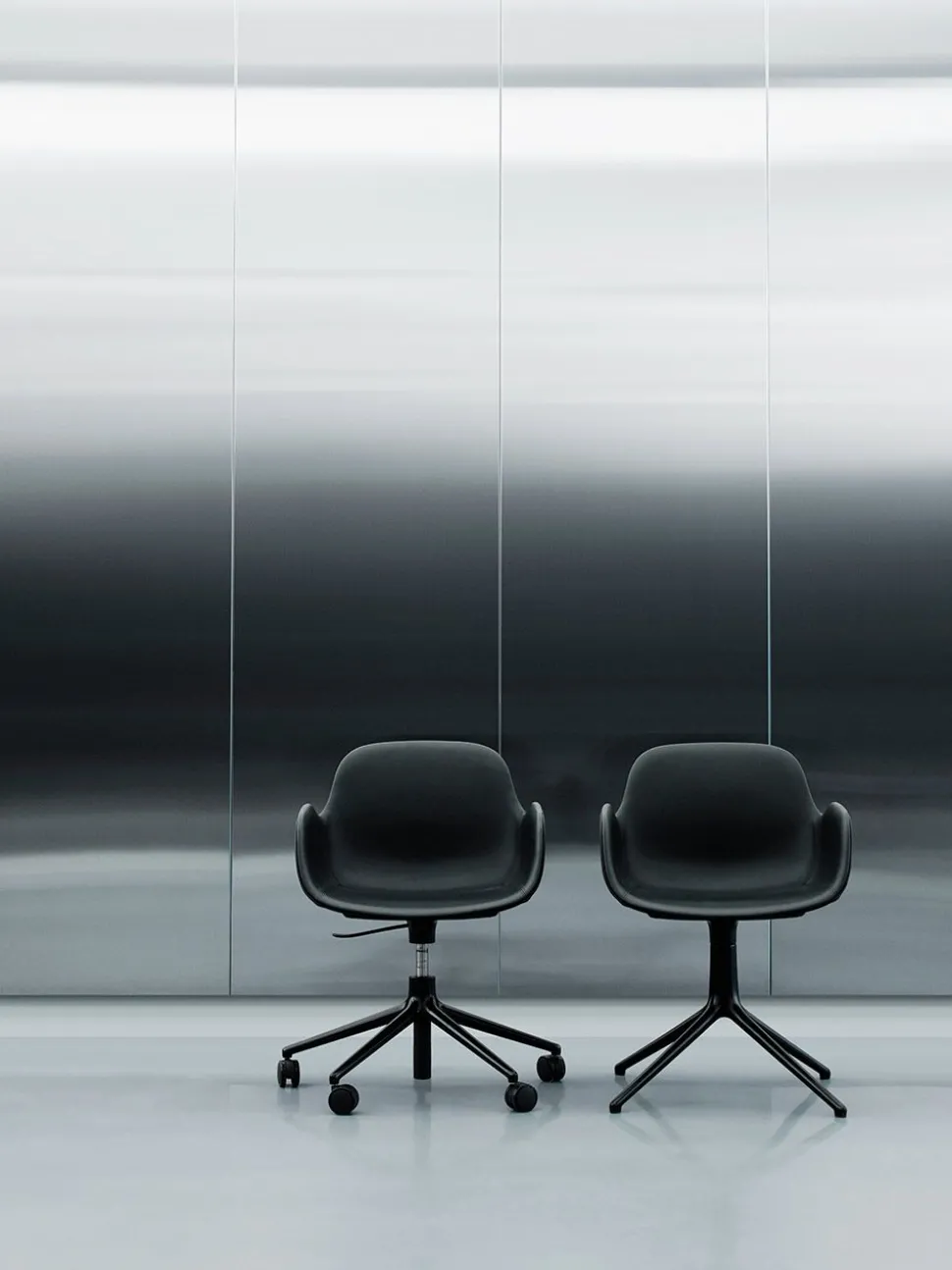 Das drehbare Gestell aus Aluminium in Schwarz, Weiß oder poliert verleiht dem Form-Stuhl ein exklusives Aussehen und eine komfortable Bewegungsfreiheit. Dies macht den Stuhl zur ersten Wahl u.a. für Restaurants und Konferenzräume. Der Drehrahmen ist mit 4 oder 5 Beinen erhältlich, die ohne bzw. mit Rädern geliefert werden.