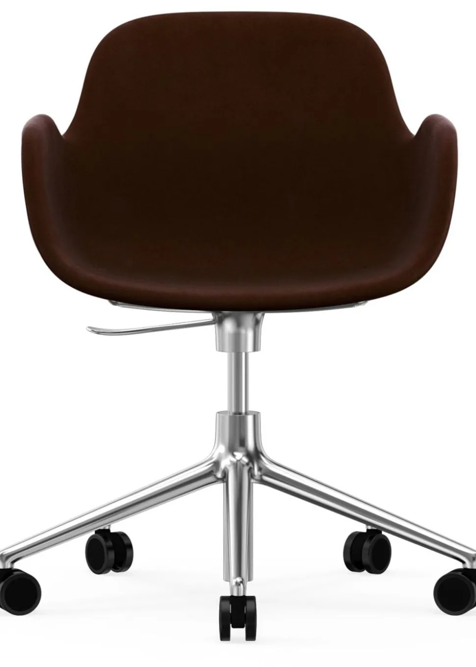 Das drehbare Gestell aus Aluminium in Schwarz, Weiß oder poliert verleiht dem Form-Stuhl ein exklusives Aussehen und eine komfortable Bewegungsfreiheit. Dies macht den Stuhl zur ersten Wahl u.a. für Restaurants und Konferenzräume. Der Drehrahmen ist mit 4 oder 5 Beinen erhältlich, die ohne bzw. mit Rädern geliefert werden.