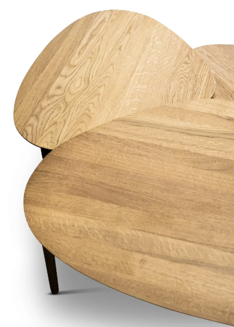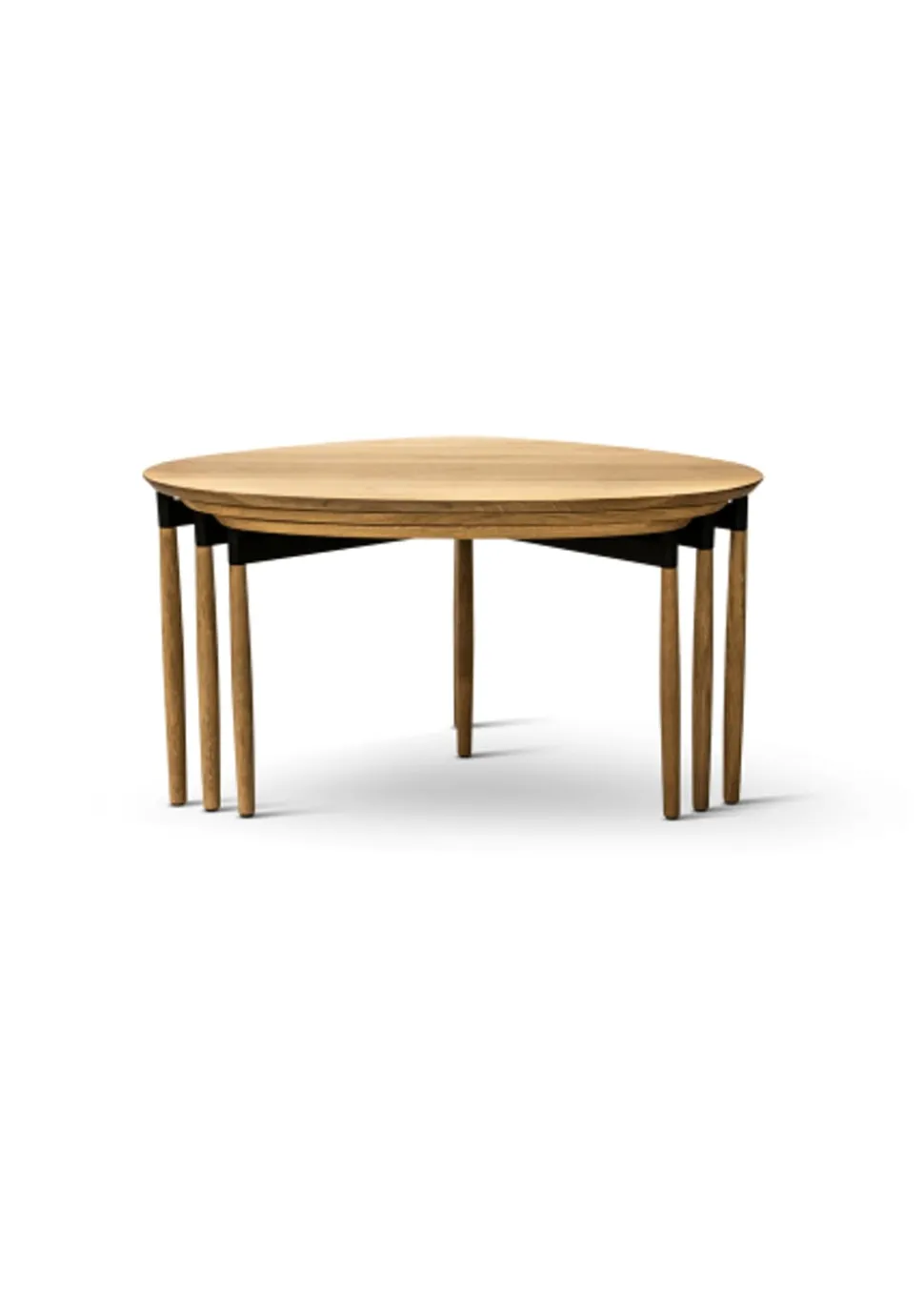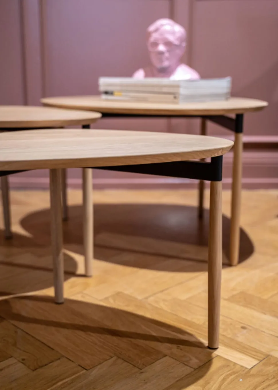 Schöner und funktioneller Couchtisch von . „Forma table“ ist nicht nur ein Tisch, sondern drei Tische mit unterschiedlichen Größen und unendlichen Möglichkeiten. Ordnen Sie sie nach Ihren Bedürfnissen und Ihrem eigenen Stil an. Die Tische gleiten mühelos untereinander und rasten ein, so dass Sie alle drei Tische auf einmal anheben können, indem Sie einfach den oberen Tisch festhalten.