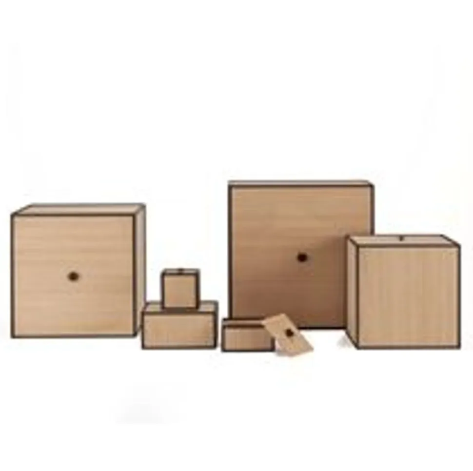 Frame ist eine flexible Aufbewahrungslösung für quadratische Kartons in kubischen Rahmen. Der Rahmen kann direkt an die Wand gehängt, gestapelt oder frei auf dem Boden stehen. Der Deckel kann komplett abgenommen oder als Tür montiert werden. Kombinieren Sie den Rahmen für ein klassisches Bücherregal, eine einzigartige Skulptur oder etwas ganz Drittes. Die Möglichkeiten sind endlos und Sie können so Ihr ganz persönliches Design und Ihren ganz persönlichen Ausdruck kreieren.