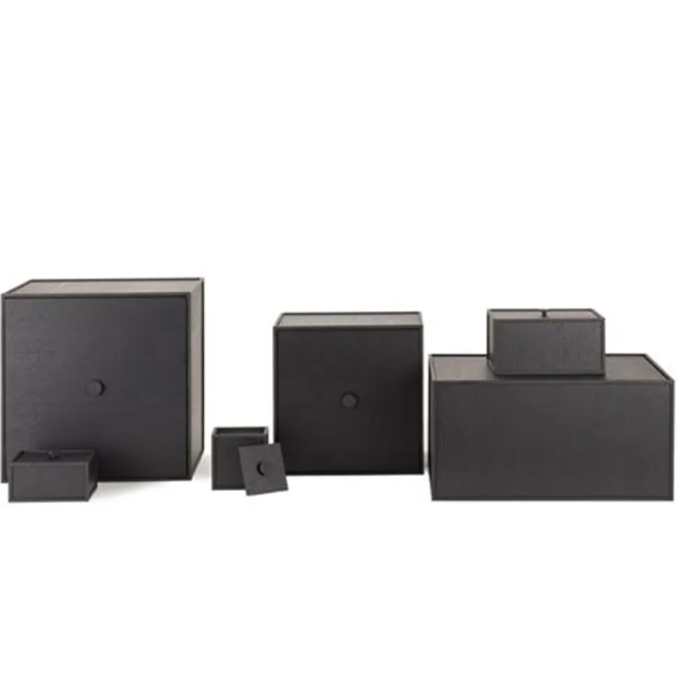 Frame ist eine flexible Aufbewahrungslösung für quadratische Kartons in kubischen Rahmen. Der Rahmen kann direkt an die Wand gehängt, gestapelt oder frei auf dem Boden stehen. Der Deckel kann komplett abgenommen oder als Tür montiert werden. Kombinieren Sie Frame zu einem klassischen Bücherregal, einer einzigartigen Skulptur oder etwas ganz anderem. Die Möglichkeiten sind endlos und Sie können so Ihr ganz persönliches Design und Ihren ganz persönlichen Ausdruck kreieren.