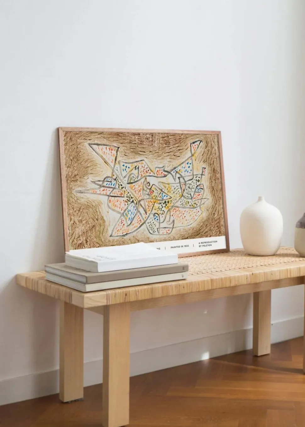 Friendly Meandering wurde vom Künstler Paul Klee entworfen. Das Plakat ist minimalistisch und hat viele einzigartige Details mit einer weichen Farbpalette.