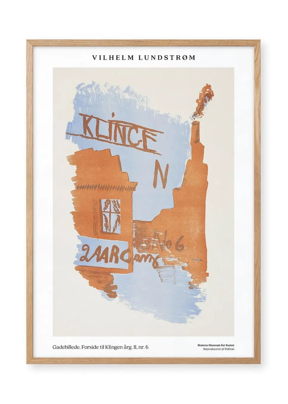 Das Kunstplakat Street Scene. Das Cover von Klingen von Vilhelm Lundstrøm ist ein charmantes gemaltes Plakat, das von neu gestaltet wurde. Straßenszene. Die Titelseite von Klingen ist Teil von Pelétons schöner Vintage-Kollektion mit musealem Layout.