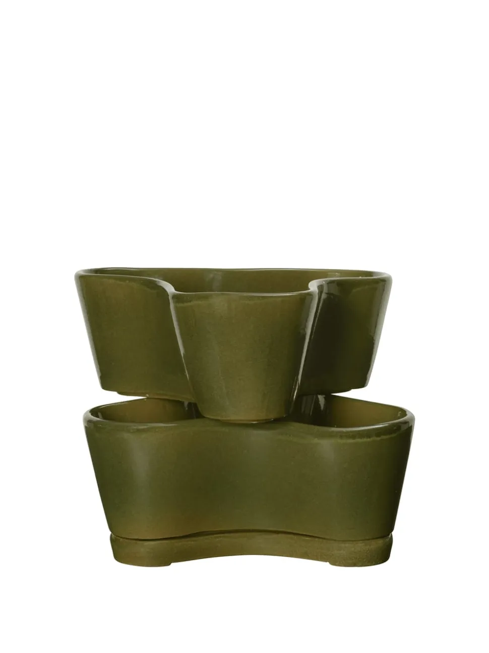 Die stapelbaren Pflanzgefäße Gemi von verbinden Funktionalität mit verspielter Ästhetik. Die kleeblattförmigen Töpfe aus glasiertem Terrakotta schaffen eine charmante Dynamik in jedem Raum und optimieren gleichzeitig den Pflanzplatz. Das Set besteht aus zwei stapelbaren Töpfen mit einem passenden Untersetzer, der überschüssiges Wasser auffängt – eine ideale Lösung für aromatische Kräuter, kleine Pflanzen oder Blumen.