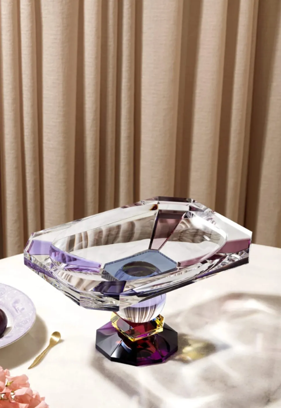 Die Georgia-Schale ist eine sehr elegante und einzigartige Schale, die mit violetten Tönen gefüllt ist. Er eignet sich perfekt für den Esstisch, um bunte Früchte aufzubewahren oder um Ihren Lieblingsschmuck zu verstauen. Er besticht durch sein elegantes Aussehen und seine symmetrischen Formen und wird Ihr Zuhause vervollständigen.