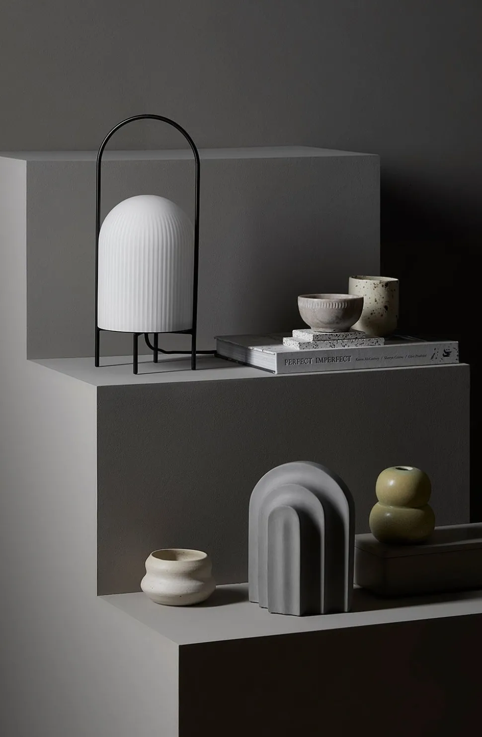 Die Ghost Tischleuchte ist ein Entwurf von Studio Kowalewski. Die Lampe ist als eine moderne Interpretation der antiken tragbaren Öllampen gedacht. Das Gestell der Lampe ist aus Metall gefertigt und fungiert sowohl als schützendes Element als auch als Griff, mit dem man die Lampe herumtragen kann. Der Schirm besteht aus Opalglas und ist so gestaltet, dass es aussieht, als ob ein weißes Tuch über die Lichtquelle geworfen wurde. Daher kommt auch der Name der Leuchte, da die Leuchte, wenn sie herumgetragen wird, einem Geist in der Luft ähnelt. Die Schnur wird mit einem dimmbaren Schalter geliefert.