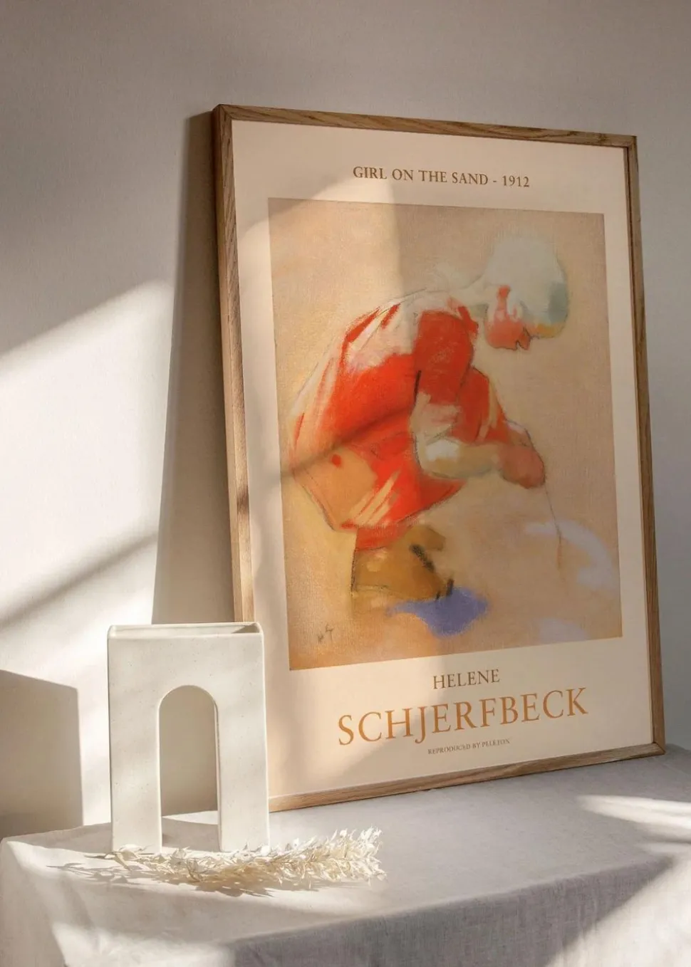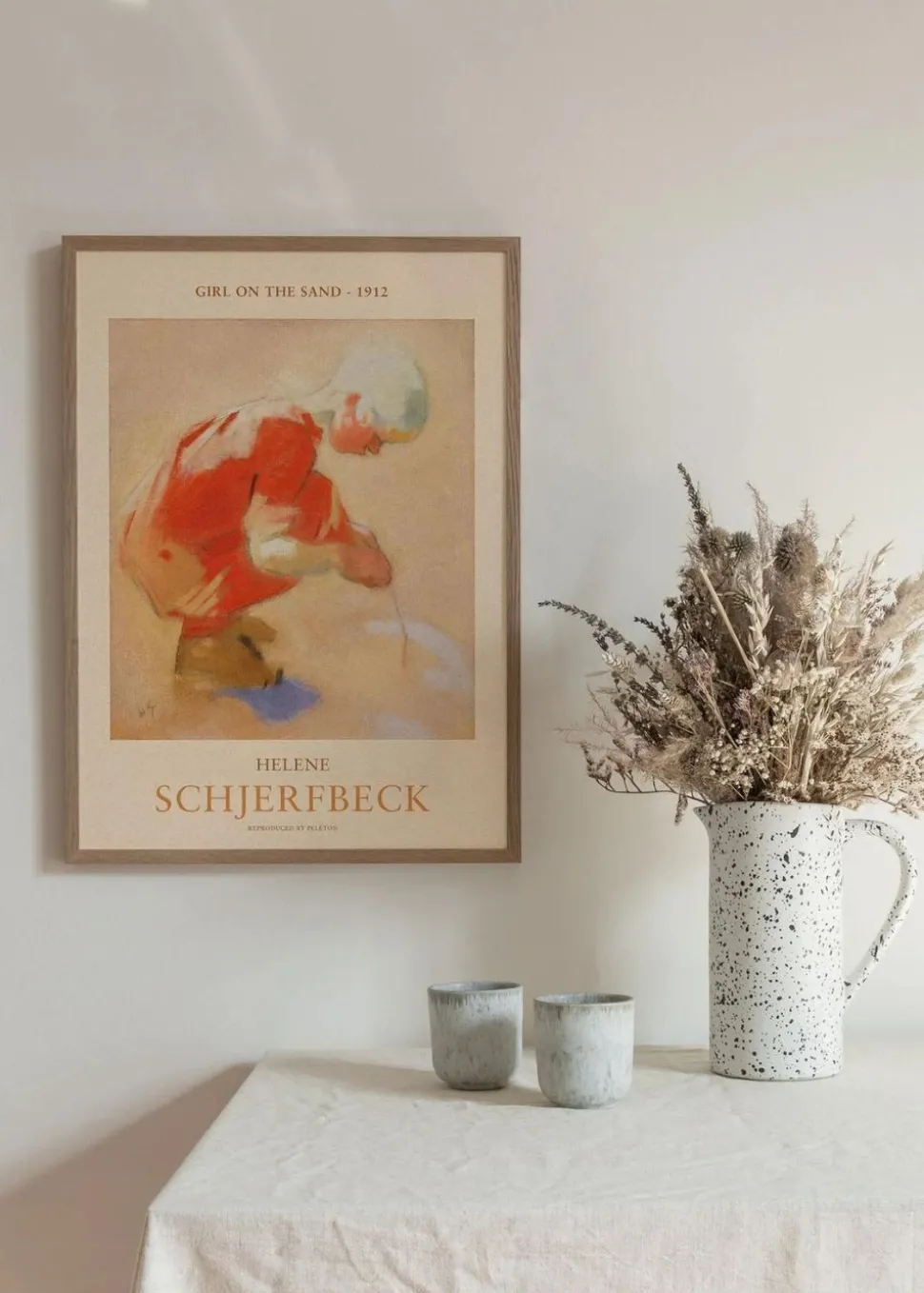 Girl on the sand wurde von der Künstlerin Helene Schjerfbeck entworfen. Das Poster ist ein schönes und stimmungsvolles Poster mit einer Illustration eines kleinen Mädchens am Strand. Sein Design hat einen weichen und detaillierten Stil in schönen warmen Farbtönen, die eine ruhige und entspannte Atmosphäre in jedem Raum schaffen.