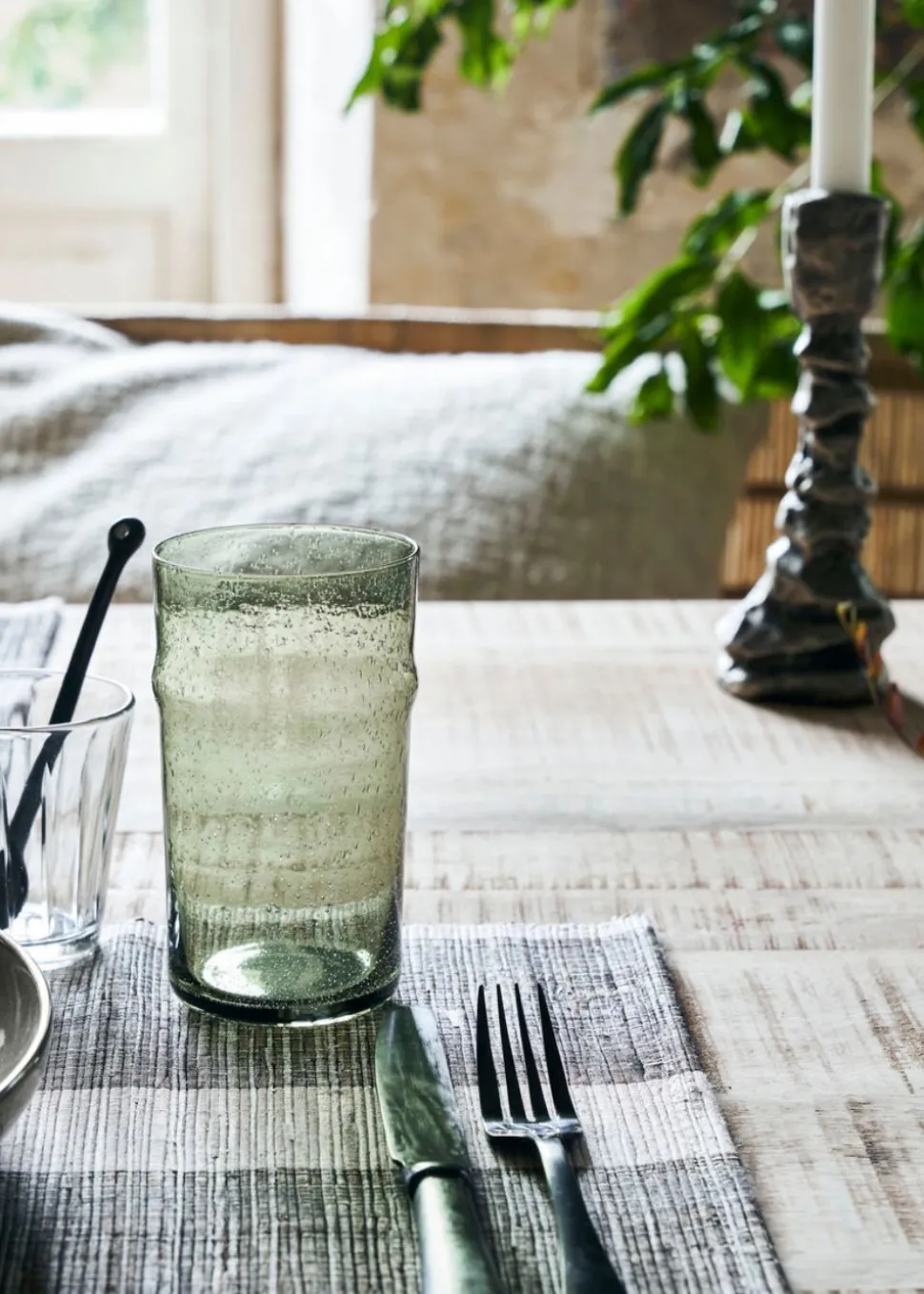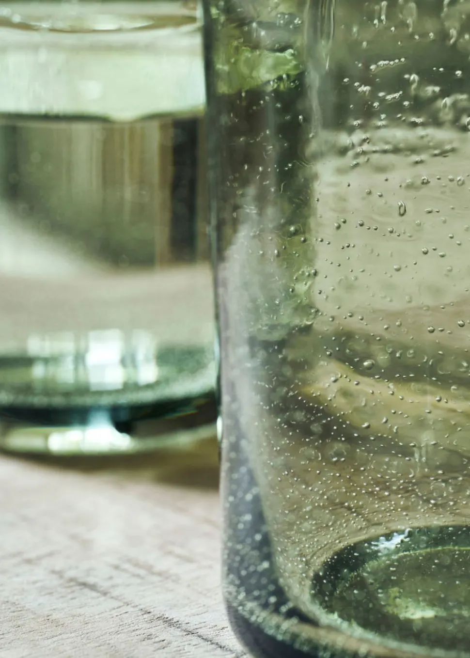 Glass, Rain von House Doctor ist ein Set aus 2 hübschen Gläsern. Wenn Sie genau hinschauen, werden Sie die schönen Luftblasen der Rain-Gläser sehen, die ihnen Charakter verleihen und sie einzigartig machen. Glass, Rain bringt Farbe und Ruhe auf den gedeckten Tisch und passt sowohl auf den Alltagstisch als auch auf die Festtafel. Kombinieren Sie sie mit den Tellern aus der gleichen Kollektion, um den Look zu vervollständigen.