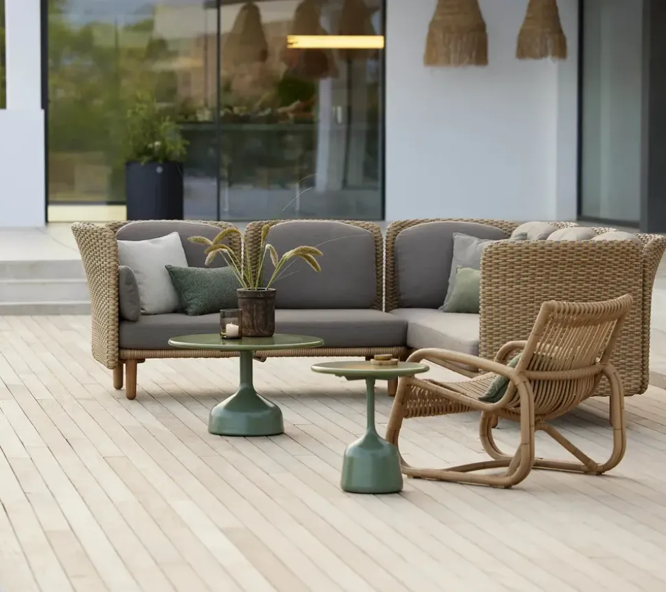Der Glaze Couchtisch von ist ein runder Couchtisch, perfekt für die heißen Sommertage auf der Terrasse oder in der Kuschelecke. Das Gestell des Tisches hat eine schöne Silhouette und besteht aus Aluminium mit einem Stahlkern, der für Stabilität sorgt. Der Tisch ist ein absolutes Unikat, von dem kein einziges Exemplar dem anderen gleicht, weshalb der Couchtisch dem Außenbereich eine elegante Note verleiht.