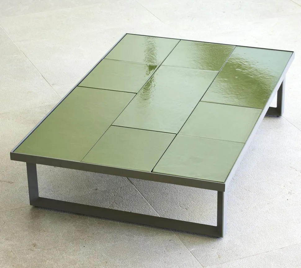 Der Glaze Couchtisch von ist ein rechteckiger Couchtisch, der sich perfekt für die heißen Sommertage auf der Terrasse eignet. Der elegante und dekorative Couchtisch, ist mit einer rechteckigen Form, bestehend aus einem Aluminiumrahmen mit losen Fliesen in entworfen. Die losen Fliesen können je nach Bedarf verschoben werden. Der Tisch ist ein absolutes Unikat, von dem kein einziges Exemplar dem anderen gleicht, weshalb der Couchtisch dem Außenbereich eine elegante Note verleiht.