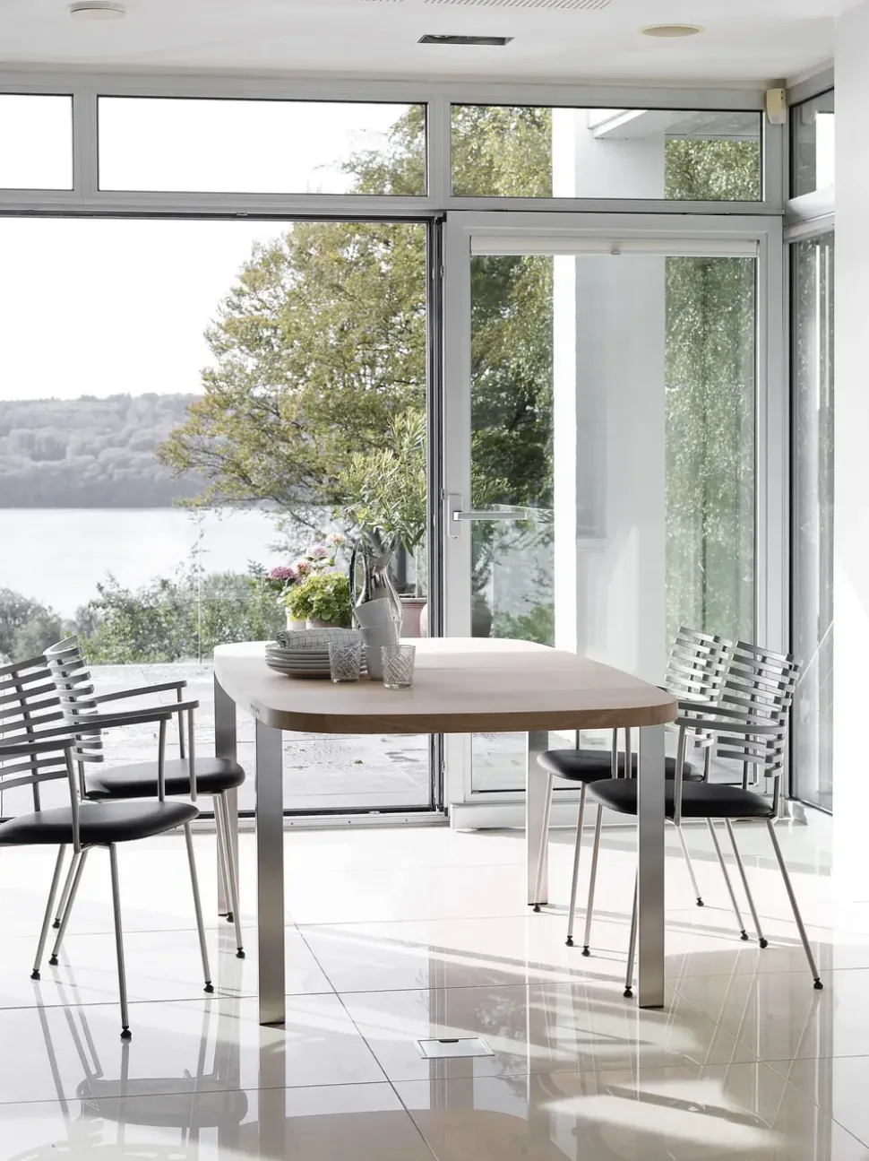 Der Esstisch GM 2122 von , entworfen von Nissen & Gehl, ist ein Meisterwerk an Schlichtheit und Eleganz. Dieser exquisite Tisch zeichnet sich durch die nahtlose Kombination von Stahlbeinen und Massivholz aus, was zu einer unverwechselbaren und raffinierten Ästhetik führt. Jedes Detail ist sorgfältig ausgearbeitet, so dass der Tisch nicht nur als funktionales Möbelstück, sondern auch als beeindruckender Blickfang in jedem Esszimmer dient.