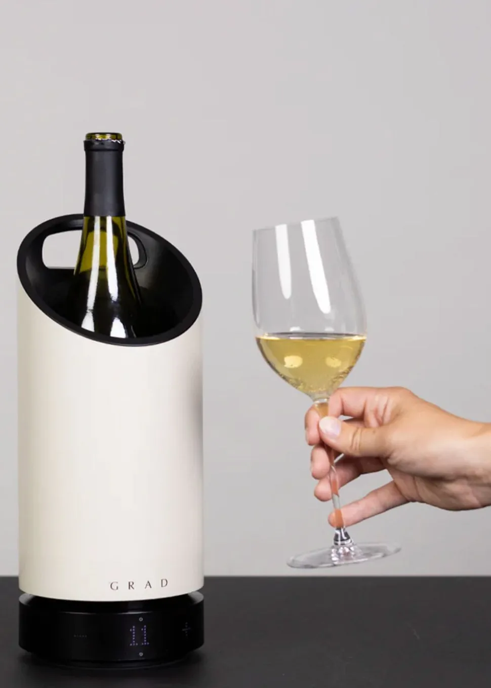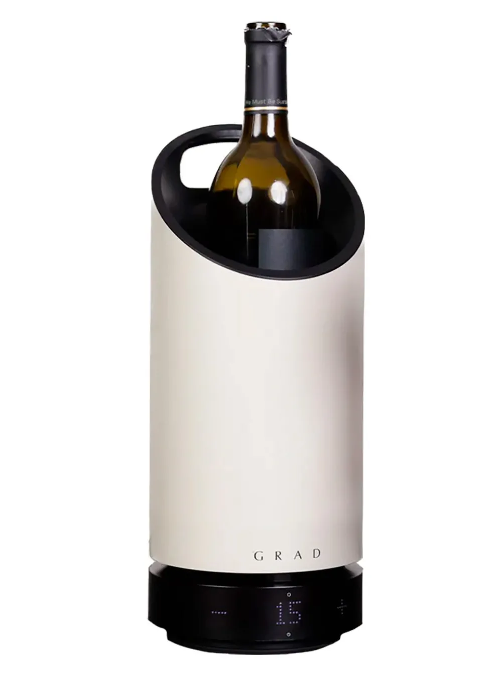 Grad No.1 wurde entwickelt, um Ihren Wein direkt aus dem Keller oder Kühlschrank auf die perfekte Serviertemperatur zu bringen. Ausgehend von einer Flasche mit Zimmertemperatur kühlt Grad No.1 sie auf die gleiche Weise ab wie ein normaler Kühlschrank – es dauert etwa 30 Minuten für eine Rotweinflasche und 55 Minuten für eine Weißweinflasche, bis sie die ideale Serviertemperatur erreicht hat.