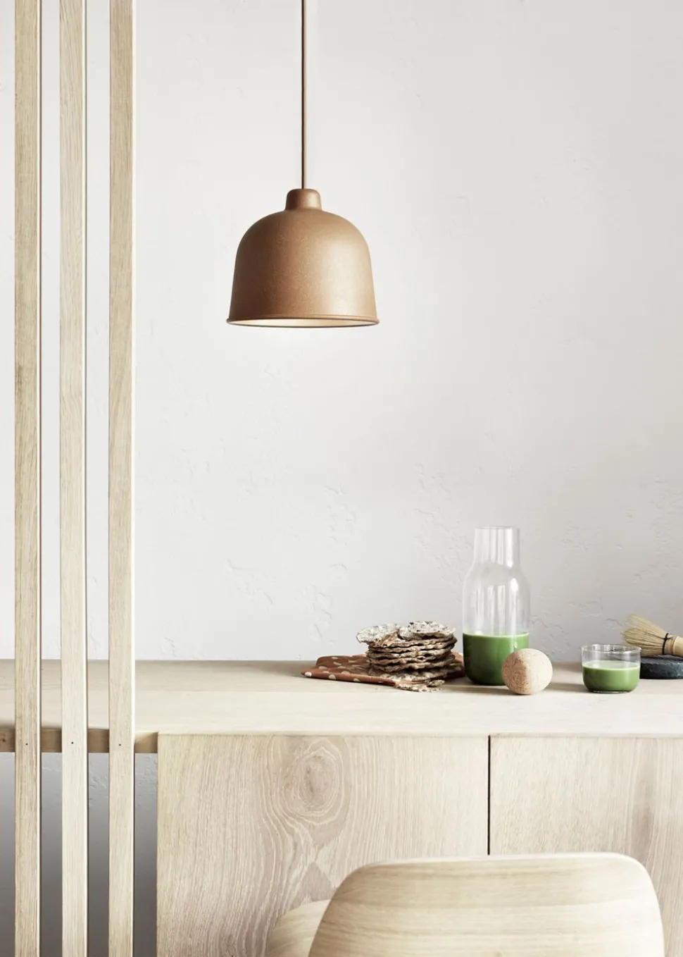 Diese Lampe ist einfach und vielseitig einsetzbar. Die Einfachheit von Grain macht es einfach, es in jeden Stil zu integrieren, den Sie in Ihrem Zuhause haben könnten. Grain ist eine Lampe mit einem ikonischen Design, aber mit verspielten Details, die sie auszeichnet. Jens Fager entwarf die Grain Hängeleuchte.
