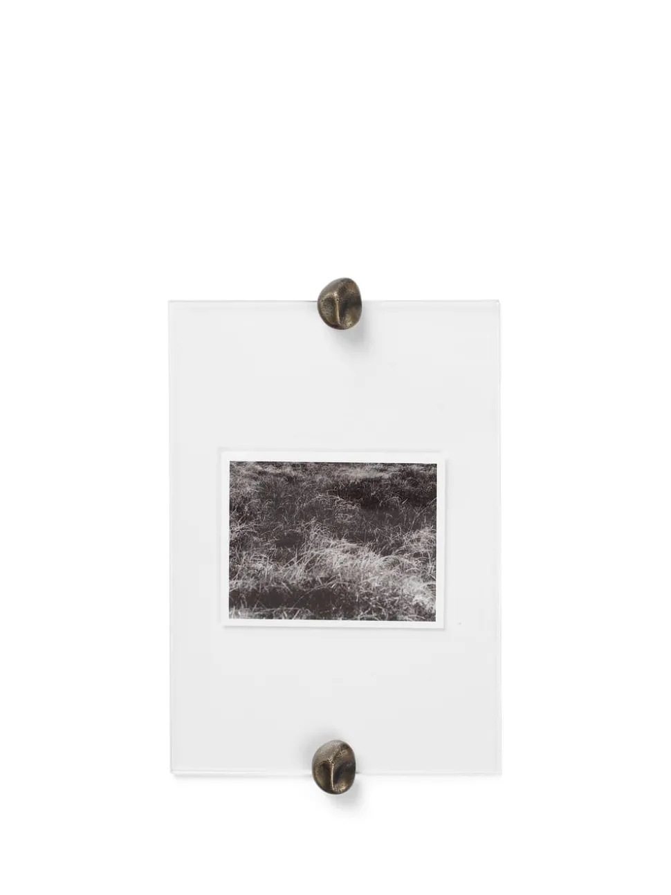 Entdecken Sie den eleganten Gravel Bilderrahmen von , ein Meisterwerk des zeitgenössischen Designs, das jedem Raum einen Hauch von Raffinesse verleiht. Dieser moderne Bilderrahmen besteht aus zwei Acrylplatten, die durch skulpturale Messinggusshalterungen, die an kleine Kieselsteine erinnern, miteinander verbunden sind. Diese einzigartige Konstruktion unterstreicht nicht nur die Schönheit des Bildes, sondern verleiht Ihrer Wanddekoration auch eine künstlerische Dimension. Mit seinem minimalistischen Design und den warmen Messingdetails bietet der Gravel-Bilderrahmen ein perfektes Gleichgewicht zwischen Eleganz und Schlichtheit, was ihn zu einer unverzichtbaren Ergänzung für Ihr Zuhause macht.
