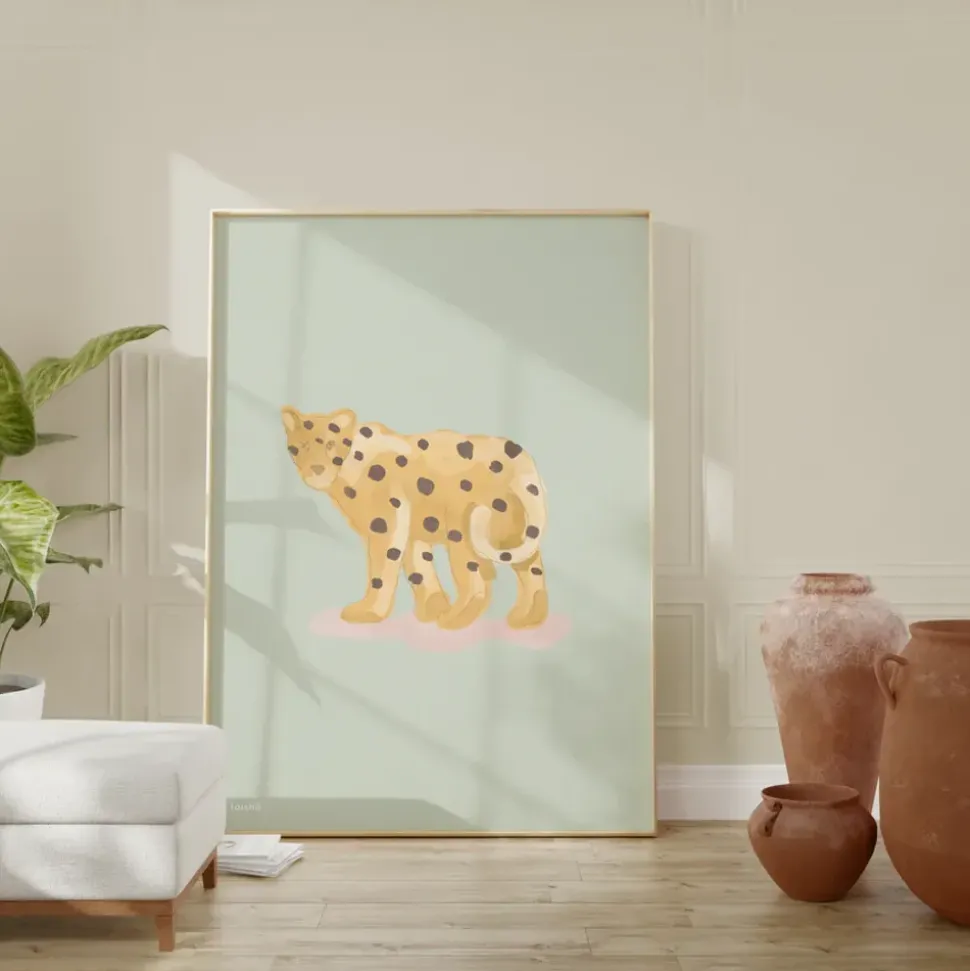 Das Poster „Green Cheetah“ von hat einen grünen Hintergrund mit einem majestätischen Geparden darauf. Der süße Ausdruck des Posters und die weichen Pinselstriche bringen Gemütlichkeit in das Kinderzimmer. Kombinieren Sie es mit den anderen Kinderpostern von und gestalten Sie eine einzigartige kleine Bilderwand, an der sich Ihr Kind erfreuen kann.
