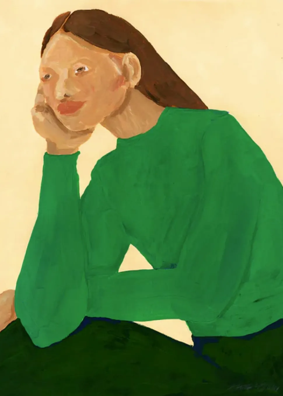 Hübsche Frau in grüner Kleidung. Hanna Peterson von The Poster Club ist eine schwedische Künstlerin, die in Kopenhagen lebt. Schon als Kind liebte sie es, Kunst zu schaffen, und dieses Gefühl ist geblieben. Ihre Inspiration für die schönen Plakate holt sie sich aus Musik und Poesie.