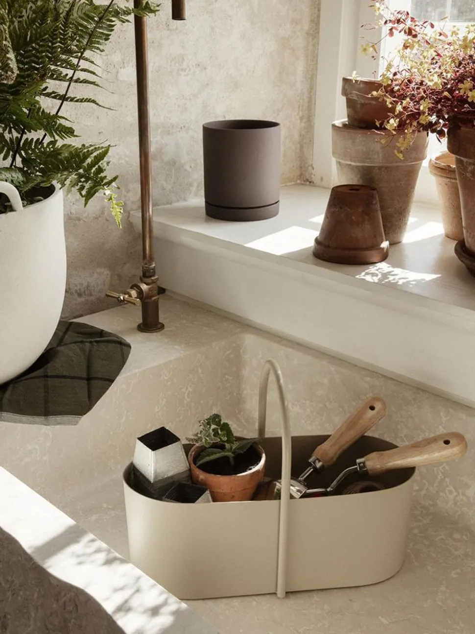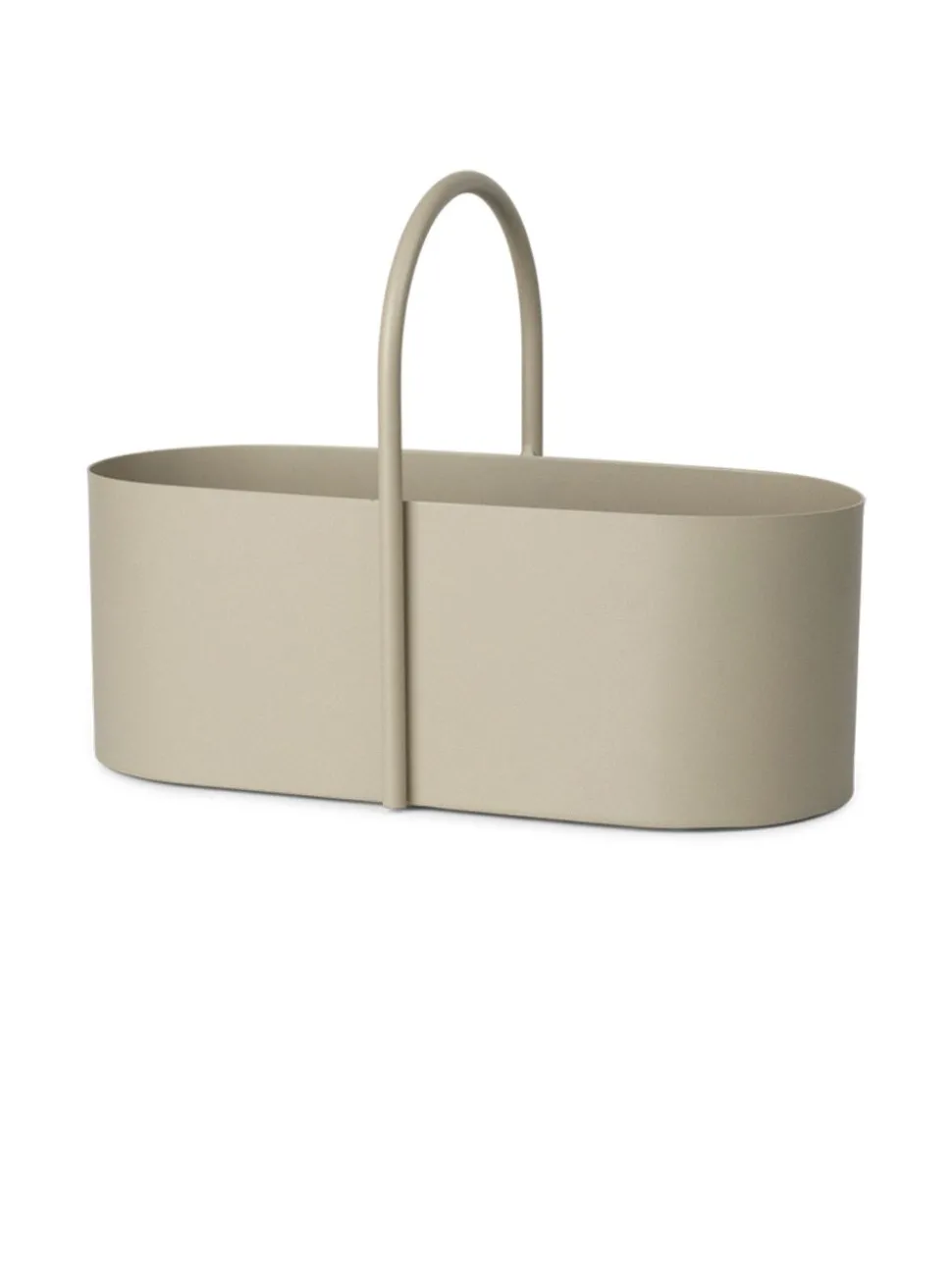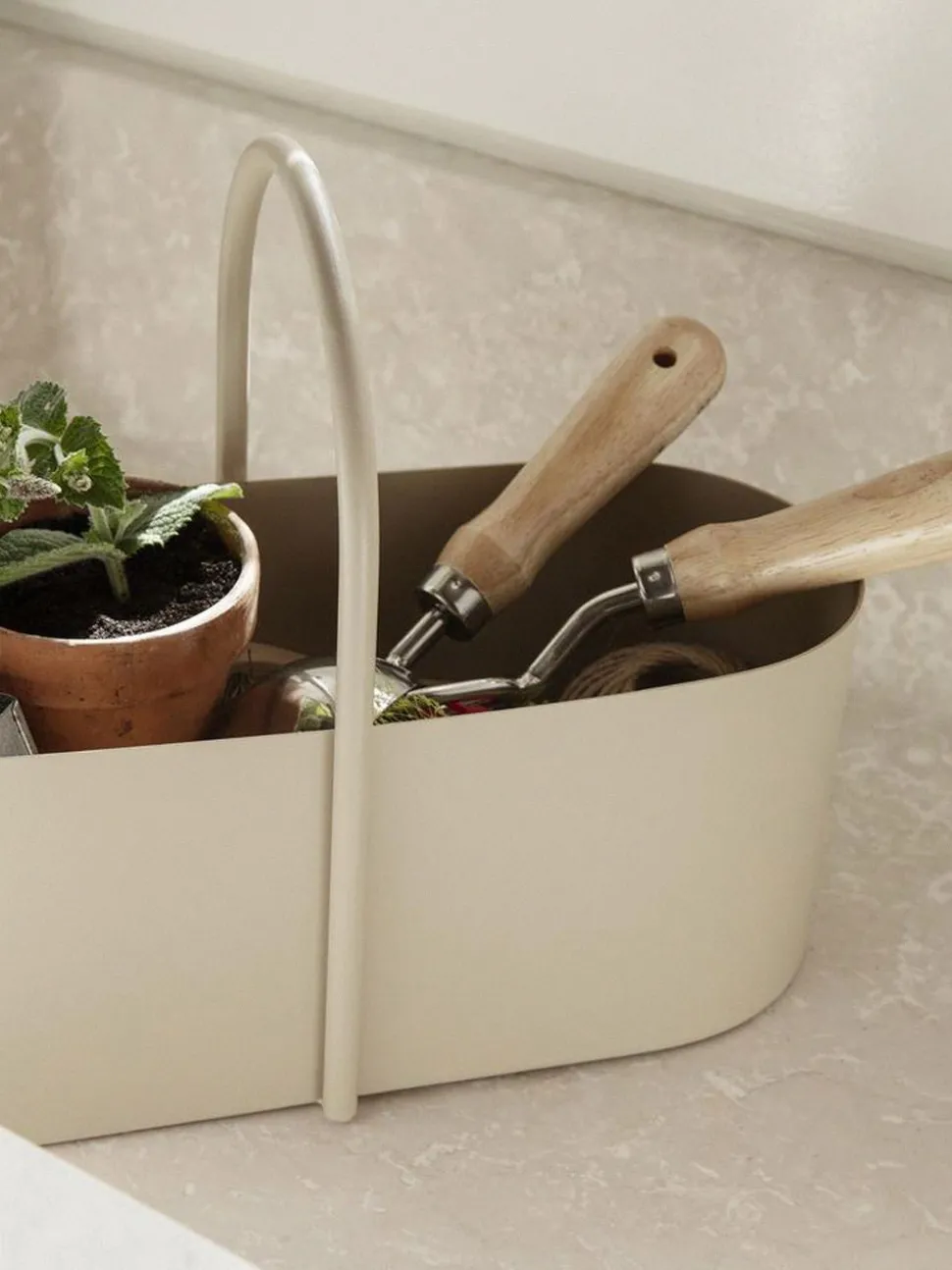 Die Grib Toolbox von ist mit ihrer ovalen Form und dem praktischen Griff ein vielseitiges Produkt, das in jedem Raum funktional ist. Der pulverbeschichtete Stahl in 4 organischen Farben macht es einfach, die Box in jedem Zuhause zu dekorieren. Verwenden Sie sie für Gewürze und Öle in der Küche, als Pflanzenbox oder für Büro- und Badartikel.