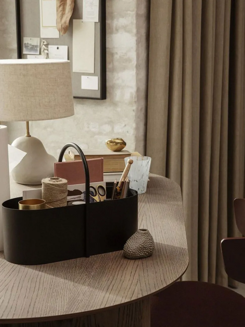 Die Grib Toolbox von ist mit ihrer ovalen Form und dem praktischen Griff ein vielseitiges Produkt, das in jedem Raum funktional ist. Der pulverbeschichtete Stahl in 4 organischen Farben macht es einfach, die Box in jedem Zuhause zu dekorieren. Verwenden Sie sie für Gewürze und Öle in der Küche, als Pflanzenbox oder für Büro- und Badartikel.