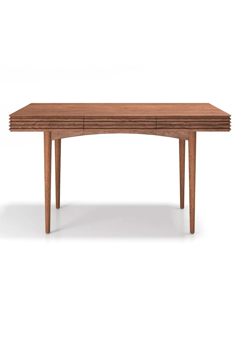 Groove Desk von ist in einer großen Auswahl an exklusiven Holzarten und schönen Oberflächen erhältlich. Wählen Sie zwischen edler Eiche, raffinierter Räuchereiche oder zeitlosem Nussbaum, jedes mit seinen eigenen einzigartigen Eigenschaften. Sie können auch zwischen einer schönen geölten Ausführung, einer eleganten weiß geölten Ausführung oder einer zarten Seifenbehandlung wählen (gilt nur für Eiche). Für weitere Informationen über Variationen oder Preise, kontaktieren Sie uns bitte per E-Mail oder Telefon.