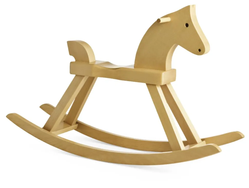 Das Schaukelpferd aus Holz gehört seit 1936 zur Familie der Holztiere von Kay Bojesen. Jahrelang machten sich die Kinder im Galopp auf sein Pferd in Richtung entfernter Fantasy-Horizonte. Für die Taufe und den Geburtstag der Jüngsten – eine Design-Ikone, die seit Generationen weitergegeben wird und als Geschenk von jemand Besonderem in Erinnerung bleibt.