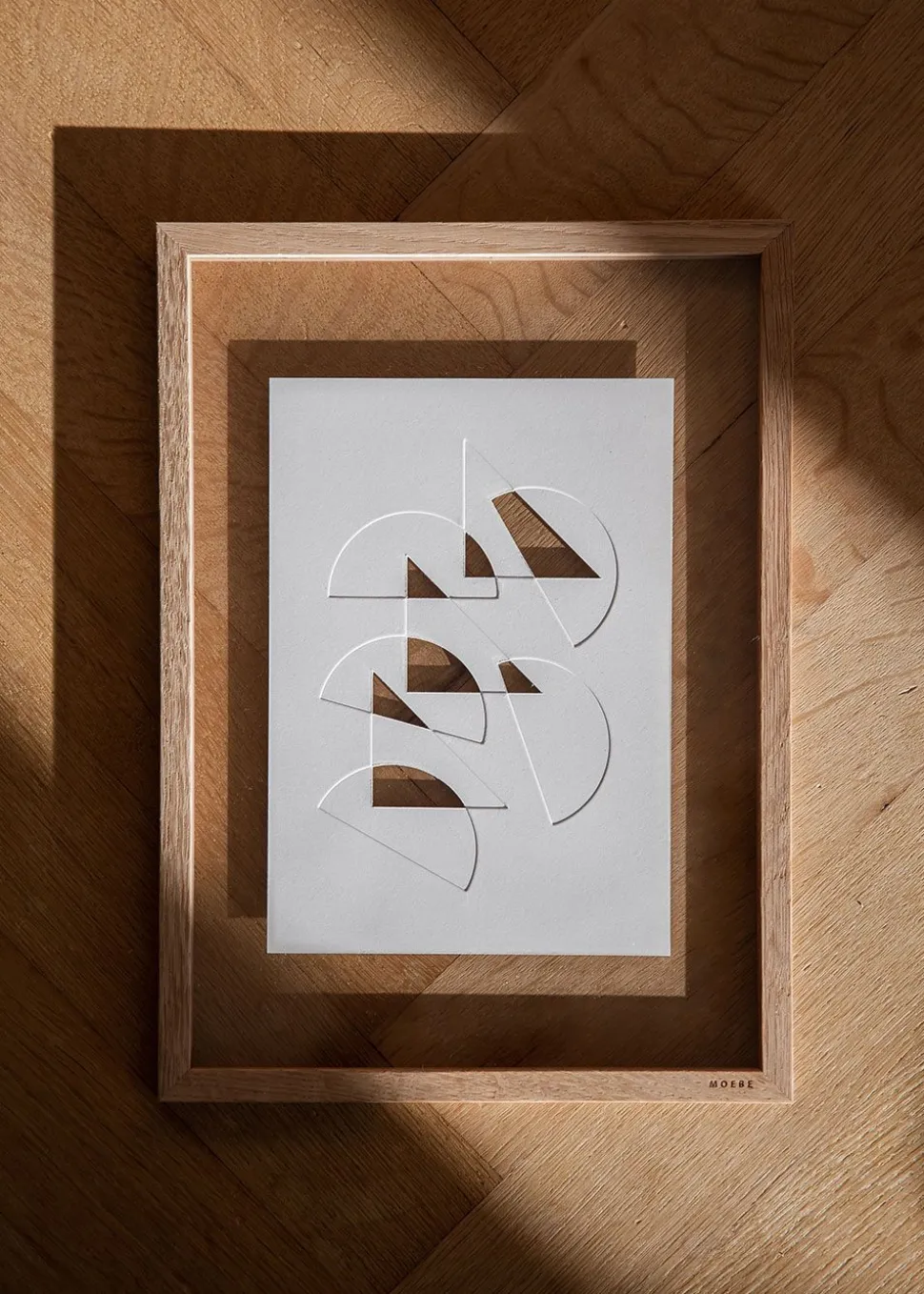 Als Teil der Papercut Artwork-Kollektion von Moebe schmücken Half Moons & Triangles die Wände Ihres Zuhauses. Jedes Kunstwerk der Kollektion ist auf fein strukturiertes, mattes Papier mit einem Gewicht von 350 g geprägt. Die Scherenschnitte erinnern ein wenig an den Kunststil „Relief“ und können sowohl einzeln als auch zusammen gestaltet werden.Das rohe weiße Papier, das geometrische Design und der abstrakte Look bedeuten, dass Half Moons & Triangles sowohl zu einer weißen Wand passen, die durch einen Bilderrahmen transparent ist, als auch zu einer farbigen Wand in Ihrem Zuhause, um ein wenig mehr Spiel in die Einrichtung zu bringen.