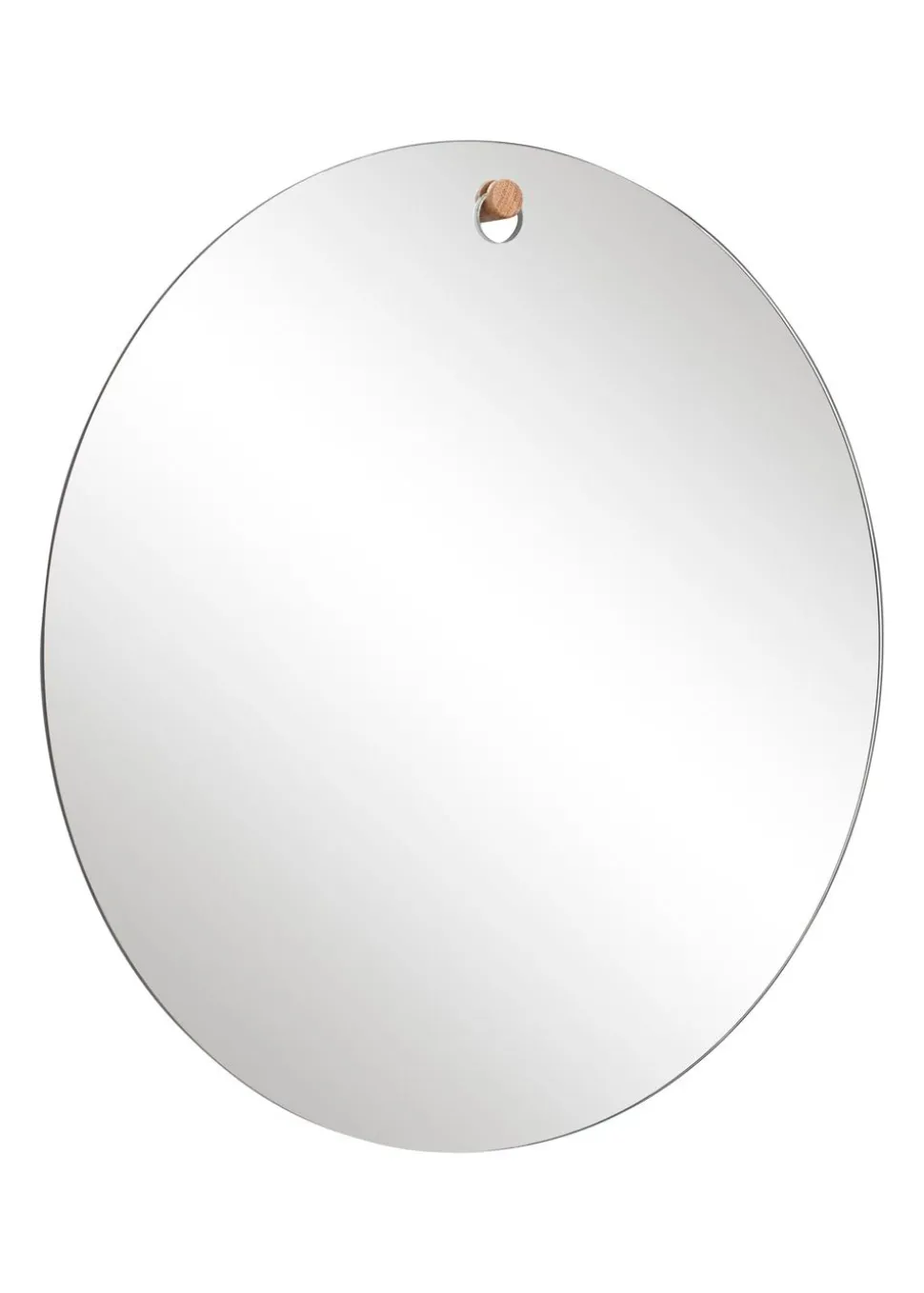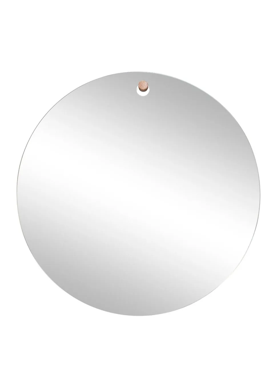 Einfacher und minimalistischer Spiegel des Dänen aus schönem Spiegelglas. Der Spiegel hat ein elegantes und klassisches Design. Die schöne runde Form verleiht dem Spiegel einen weichen Ausdruck und der kleine Haken, an dem der Spiegel hängt, ist ein stilvolles kleines Detail, das das Design vervollständigt.