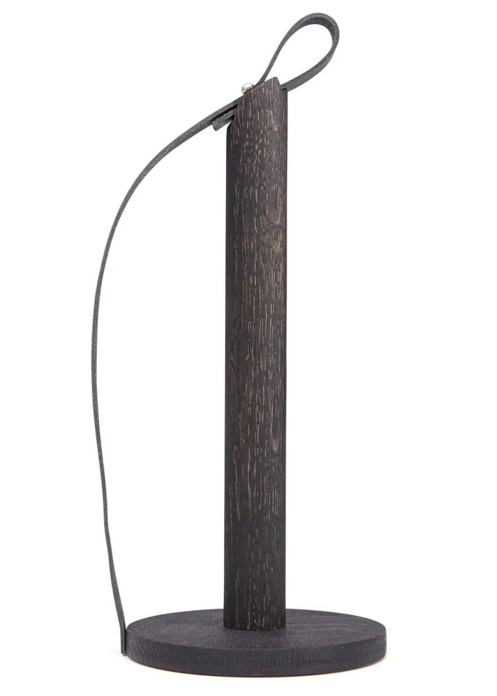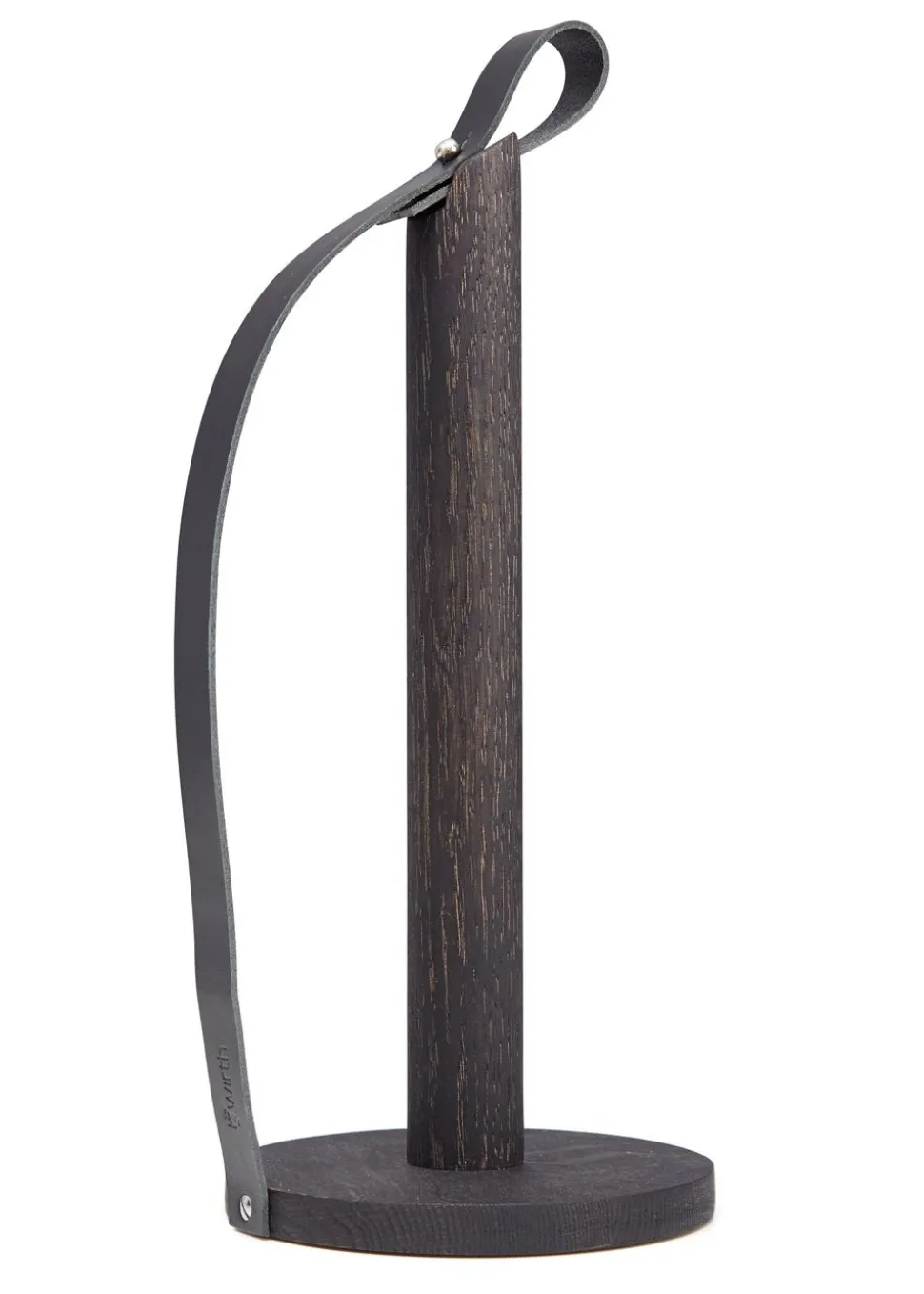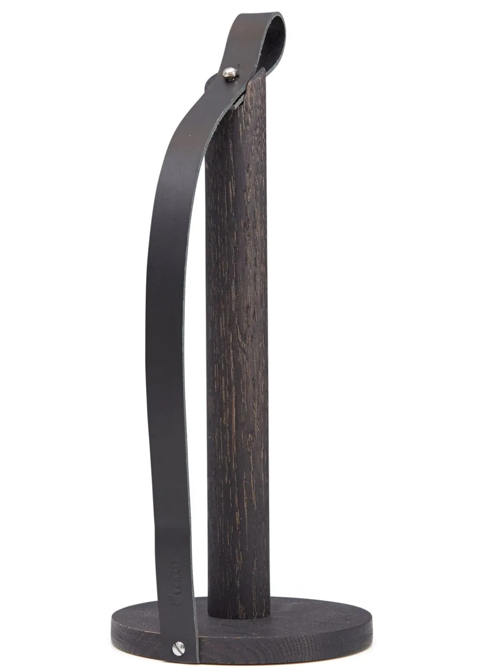 Hands On ist ein Küchenrollenhalter von . Der Halter ist aus massivem Eichenholz mit schöner sichtbarer Maserung gefertigt. Das angebrachte Kernlederband hält das Papierhandtuch an Ort und Stelle und kann auch verwendet werden, um den Halter herum zu tragen.