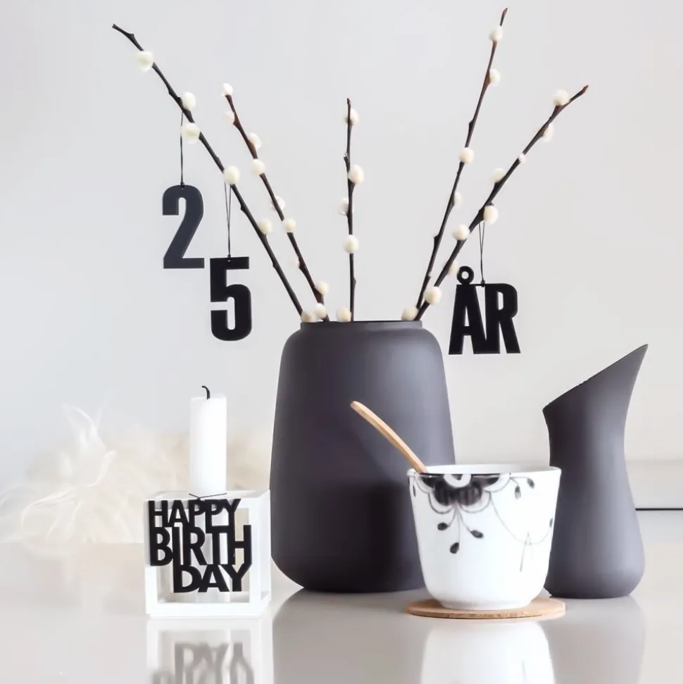 Schöne „Happy Birthday“-Dekoration von . Die Dekoration ist perfekt, um an Geburtstagen und anderen Feiertagen auf Ihrer Kubusbühne zu hängen.