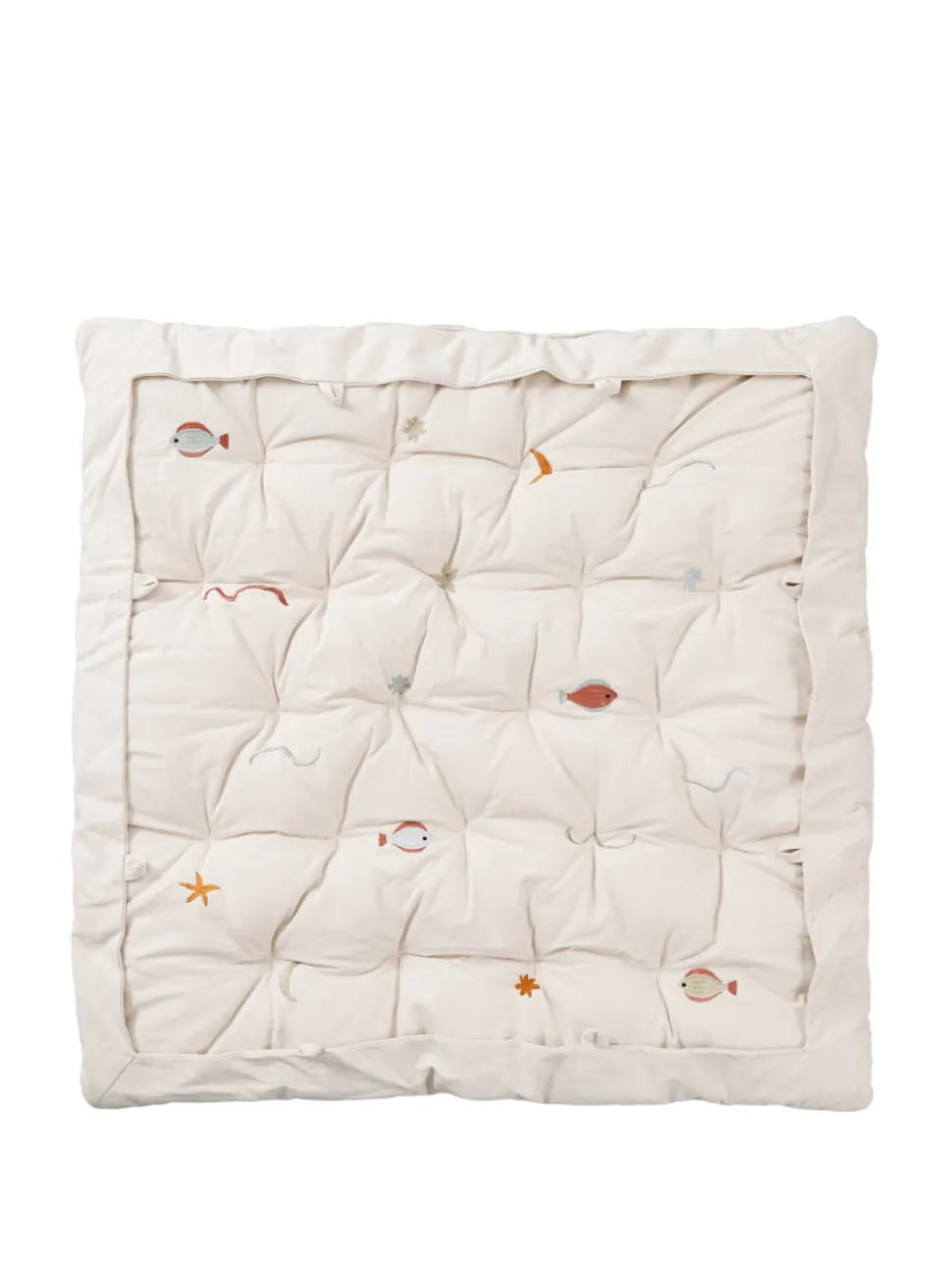Die Harbour Padded Playmat von ist für kleine Abenteurer gemacht, die die Welt gerne vom Boden aus erkunden. Die weiche, gesteppte Spielmatte ist aus ungefärbtem Bio-Baumwollstoff gefertigt und mit schönen gestickten Meeresmotiven verziert, die zum Spielen und Fantasieren einladen. Die dezente Polsterung sorgt für zusätzlichen Komfort, während die feinen Details dem Kinderzimmer einen zeitlosen Charme verleihen.