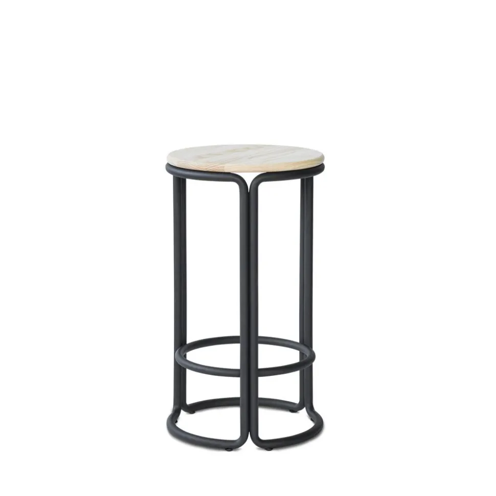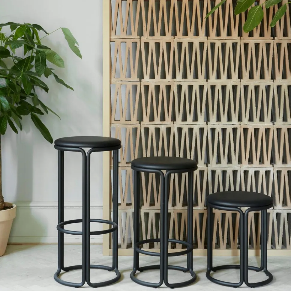 Der Hardie Counter Stool von , entworfen von Philippe Malouin, ist ein Beweis für klares, schnörkelloses Design. Mit seiner klassischen runden Sitzfläche, die von drei gebogenen Metallrohrsäulen getragen wird, schafft dieser Hocker den Spagat zwischen Schlichtheit und robuster Funktionalität. Malouins durchdachtes Design sorgt dafür, dass die Säulen zu einer starren, stabilen und langlebigen Struktur verbunden sind, die den Hardie Counter Stool sowohl praktisch als auch stilvoll macht.