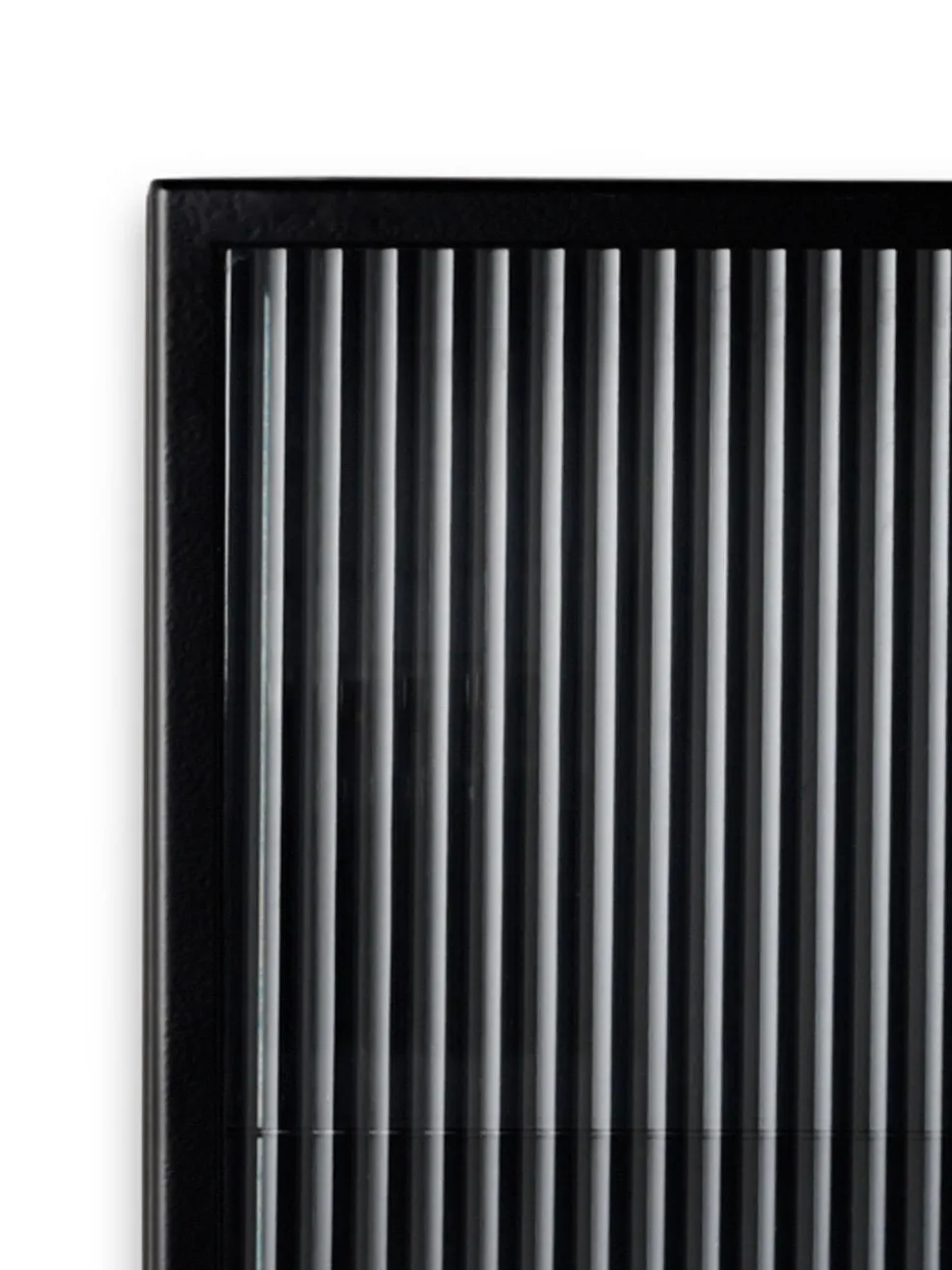 - Pulverbeschichteter Stahl sowie semitransparentes Glas- und Stahlgewebe