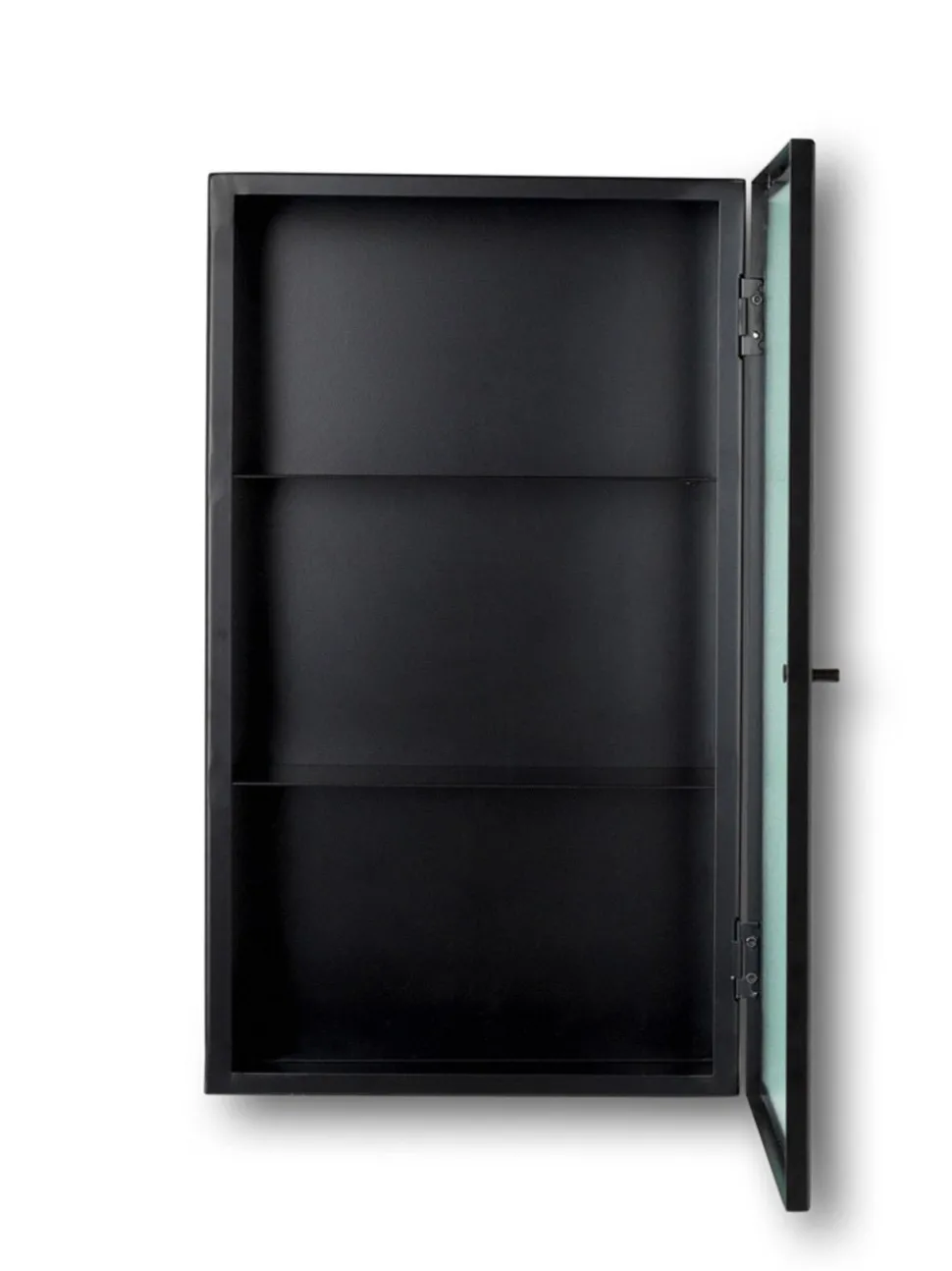 Rustikaler und roher Wandschrank zur Aufbewahrung in Küche, Esszimmer oder Bad. Die industrielle Optik des Schrankes bildet einen rustikalen Kontrast zur Dekoration und gibt dem Raum eine gewisse Note.