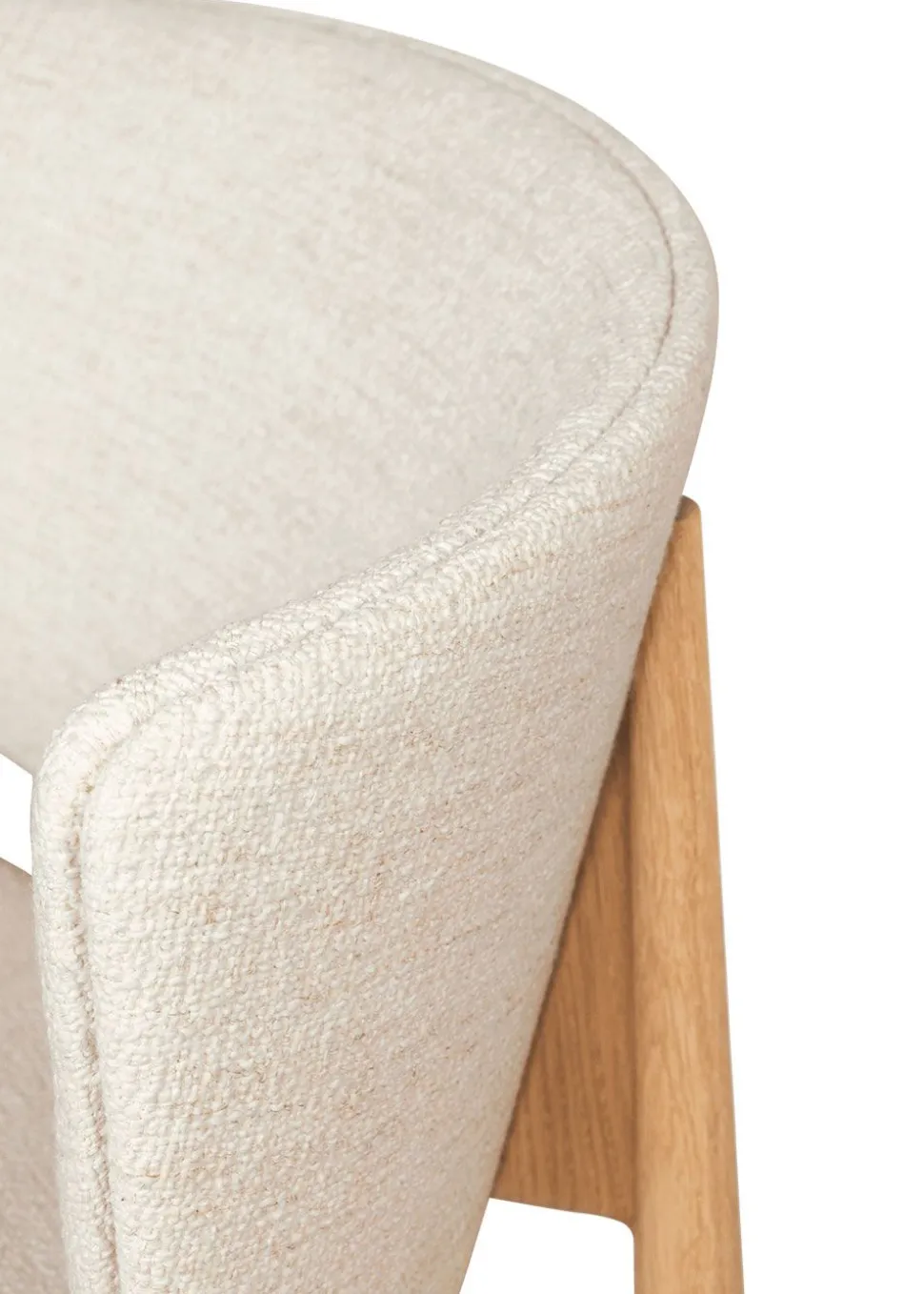 - Materialien: Gestell: FSC®-zertifizierte massive Eiche. Sitz und Rückenlehne: Bouclé. 35% Acryl, 24% Polyester, 19% Viskose, 14% Baumwolle, 5% Leinen und 3% andere Fasern.