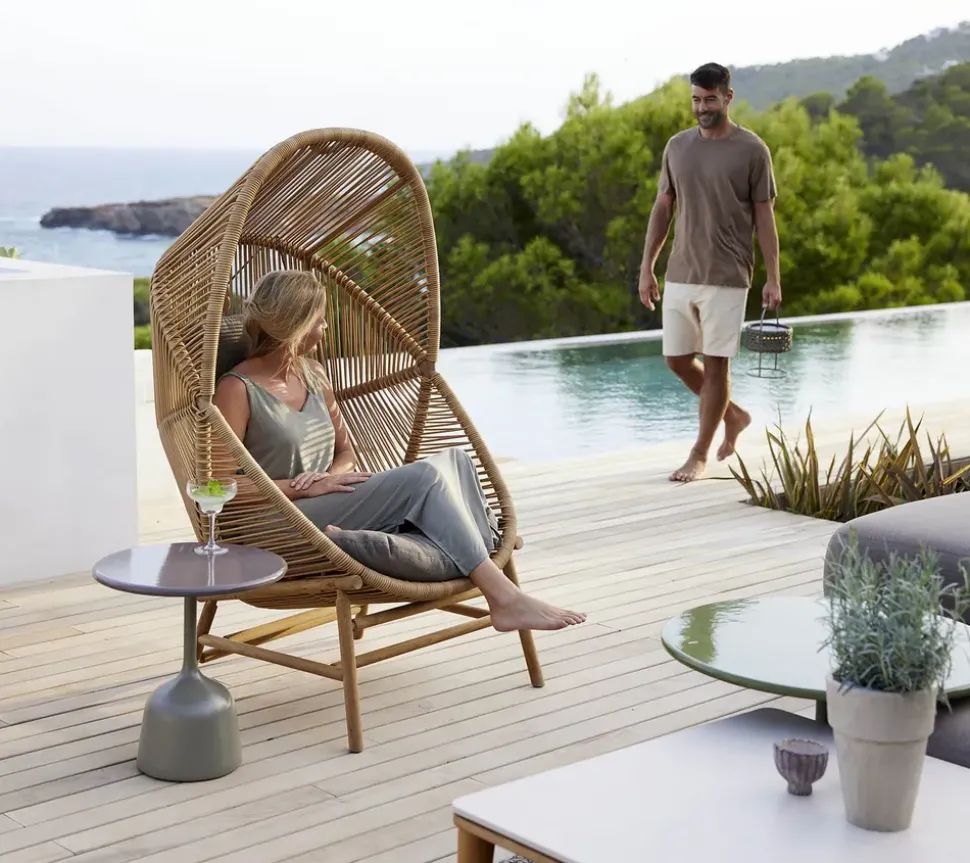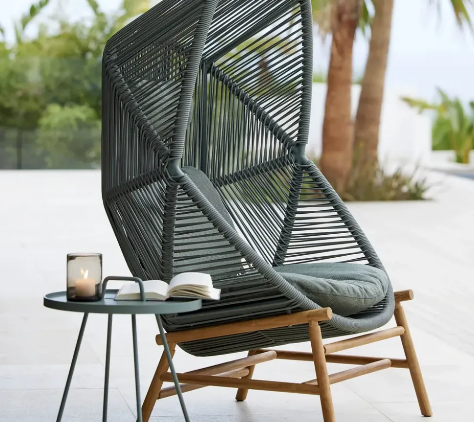 Der Hängesessel Hive von hat eine skulpturale Silhouette, die ihn zum Mittelpunkt des Außenbereichs macht. Der Hängesessel wurde von dem dänischen Designerduo Foersom und Hourt-Lorenzen MDD entworfen. Die Inspiration für die Serie Hive stammt aus dem Bienenstock und seiner Form. Dies kommt in dem einzigartigen und umfassenden Design des Stuhls zum Ausdruck. Nutzen Sie den Hängesessel, um abzuschalten, denn er schafft einen Raum der Kontemplation, der Entspannung und der Reflexion. Der Hängesessel ist sowohl zum Aufhängen mit seinem starken Seil als auch zum Aufstellen mit seinem stabilen Rahmen aus Teakholz oder Aluminium erhältlich.