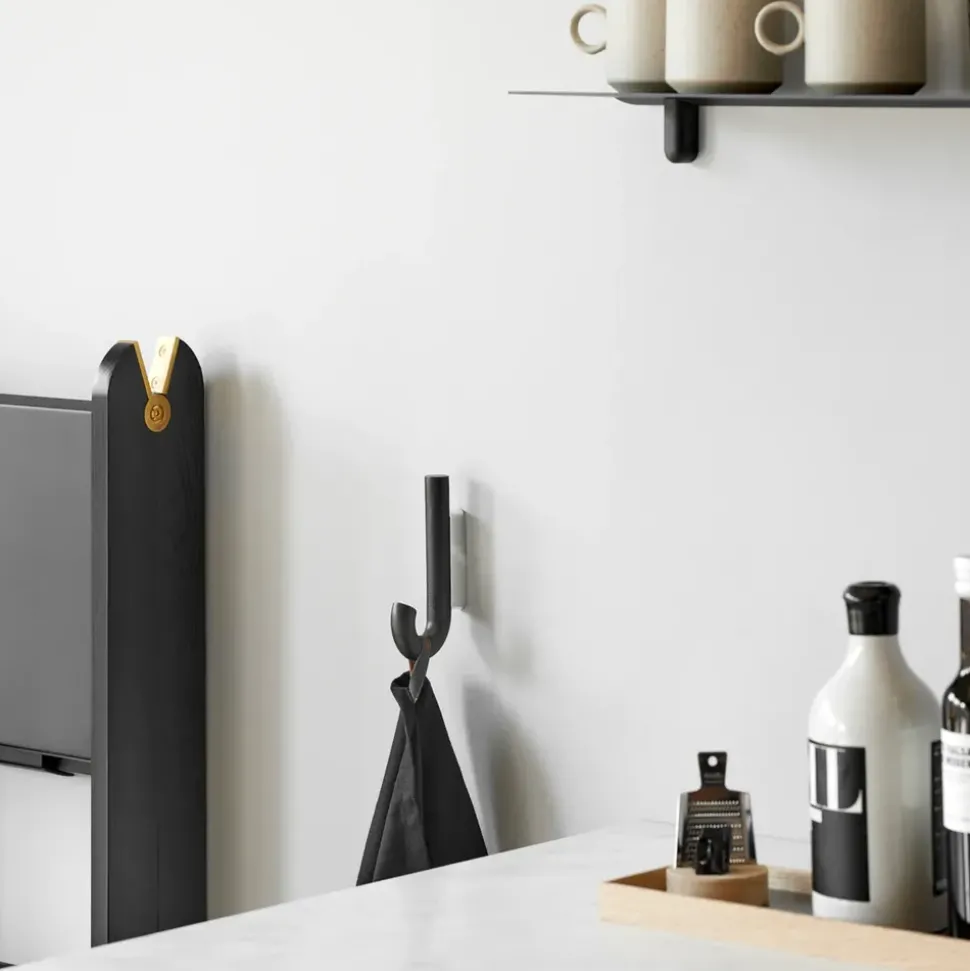 Diese schönen Hook Mini sind eine schöne Ergänzung für Ihr Zuhause. Sie können die Haken an verschiedenen Stellen in Ihrer Wohnung verwenden. Sie können sie zum Beispiel draußen in der Eingangshalle verwenden, wo ihr schlichtes Design jeden dazu einlädt, entweder seine Jacke, seinen Regenschirm oder seinen Schal aufzuhängen. Sie können sie nicht nur im Flur, sondern auch in Ihrem Badezimmer verwenden, wo sie sich hervorragend zum Aufhängen von Handtüchern und Bademänteln eignen. Ansonsten können Sie auch die Haken in Ihrer Küche verwenden, an denen Sie Geschirrtücher und Schürzen aufhängen können. Die Haken sind in drei verschiedenen Farben erhältlich. Entweder in einem warmen Nussbaum, oder in Eiche, die mit weißem Pigment und Mattlack behandelt wurde, und schließlich in schwarzer Eiche.