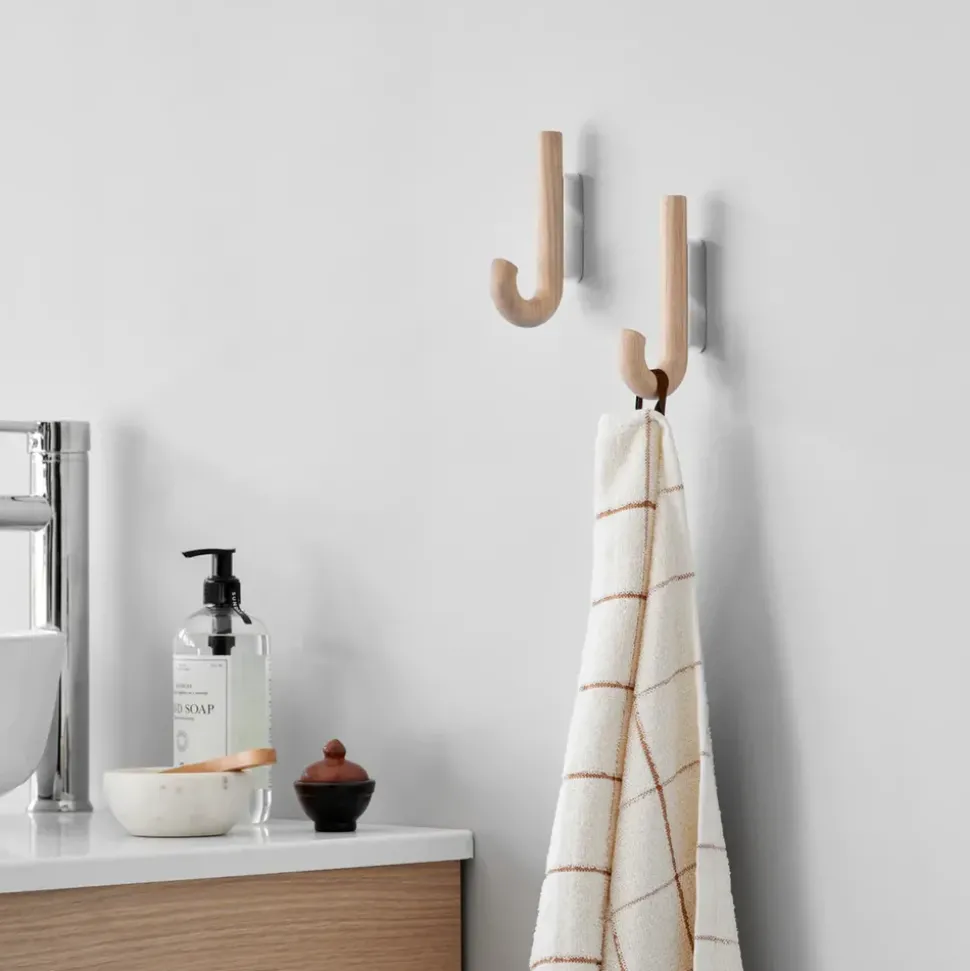 Diese schönen Hook Mini sind eine schöne Ergänzung für Ihr Zuhause. Sie können die Haken an verschiedenen Stellen in Ihrer Wohnung verwenden. Sie können sie zum Beispiel draußen in der Eingangshalle verwenden, wo ihr schlichtes Design jeden dazu einlädt, entweder seine Jacke, seinen Regenschirm oder seinen Schal aufzuhängen. Sie können sie nicht nur im Flur, sondern auch in Ihrem Badezimmer verwenden, wo sie sich hervorragend zum Aufhängen von Handtüchern und Bademänteln eignen. Ansonsten können Sie auch die Haken in Ihrer Küche verwenden, an denen Sie Geschirrtücher und Schürzen aufhängen können. Die Haken sind in drei verschiedenen Farben erhältlich. Entweder in einem warmen Nussbaum, oder in Eiche, die mit weißem Pigment und Mattlack behandelt wurde, und schließlich in schwarzer Eiche.