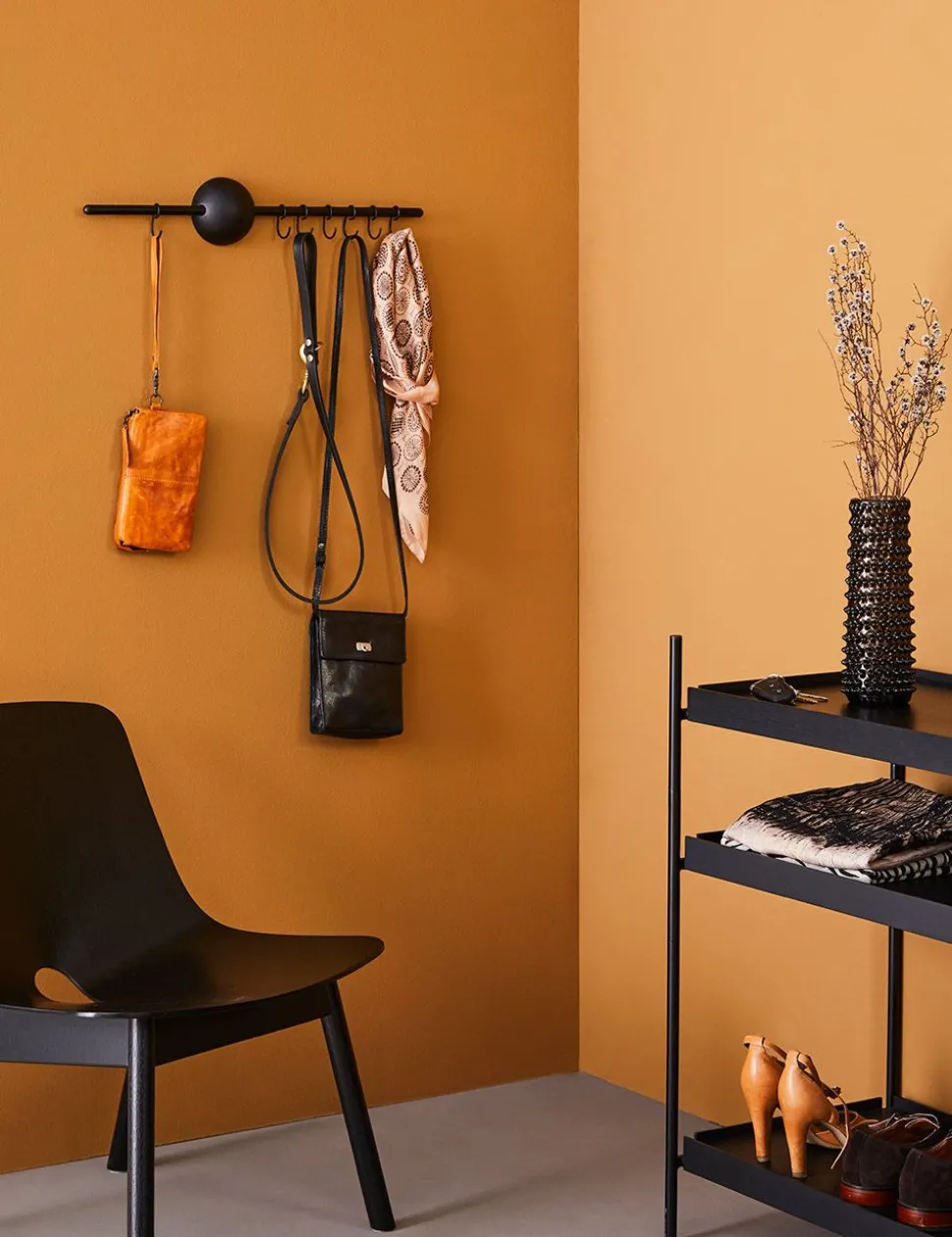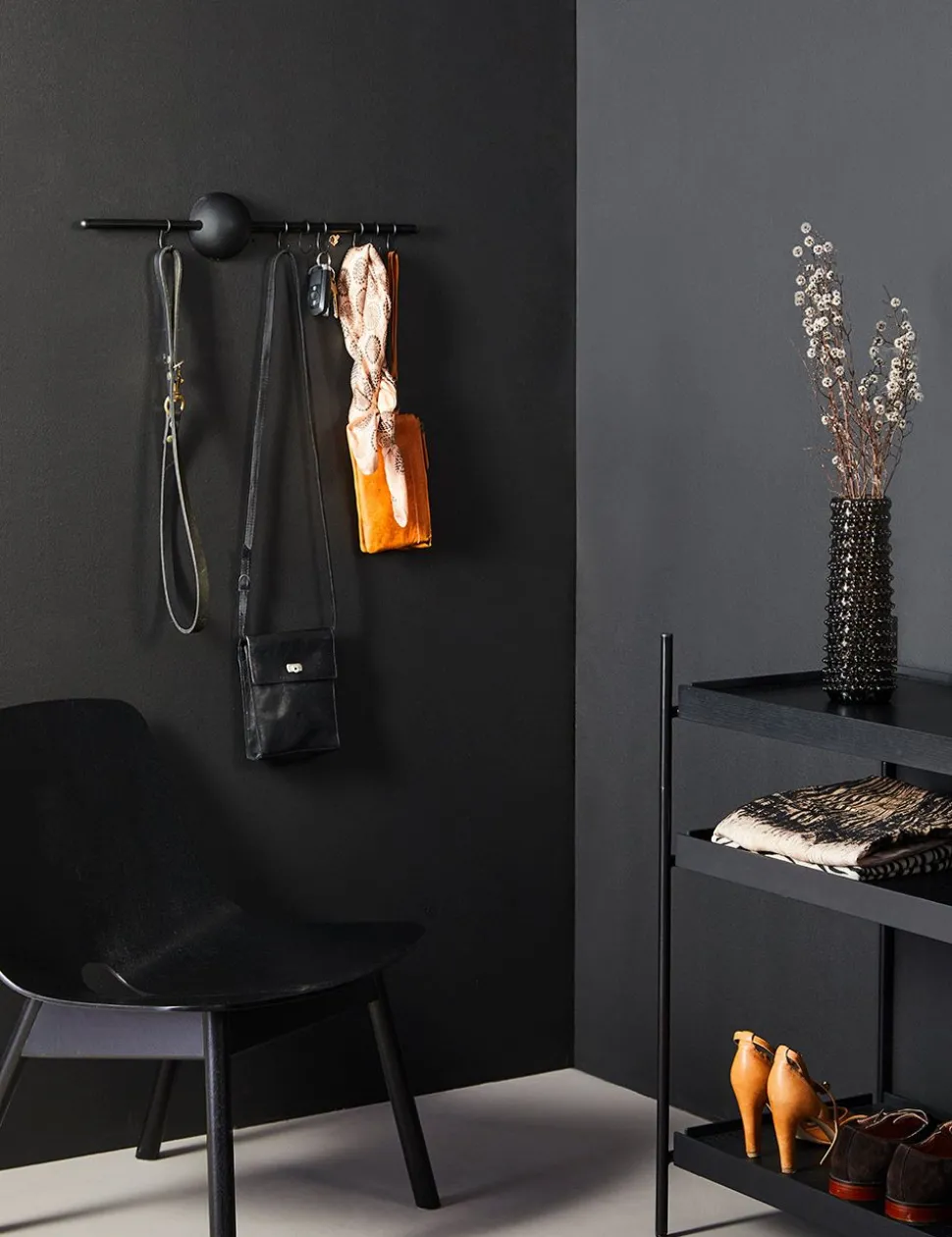 Hoop Rack ist ein Entwurf von Jeanette Holdgaard. Die Inspiration für das Design waren ein Stock und ein paar Ringe. Die Idee kam ihr während einer Partie „Ring the Stick“ im Garten mit einigen Freunden und damit schuf Jeanette Holdgaard das Hoop Rack. Mit dem Hoop Rack wollte sie die Einfachheit und Freude am Spiel in das Design einfließen lassen. Die Schlichtheit zeigt sich in den klaren Linien, die sich in der Kombination von Metall und Holz wunderbar zu einer Silhouette zusammenfügen. Dieses funktionale Regal ist ideal, um Küchenutensilien oder Geschirrtücher daran aufzuhängen. Es kann auch im Schlafzimmer oder im Flur für Mäntel und Taschen aufgehängt werden.