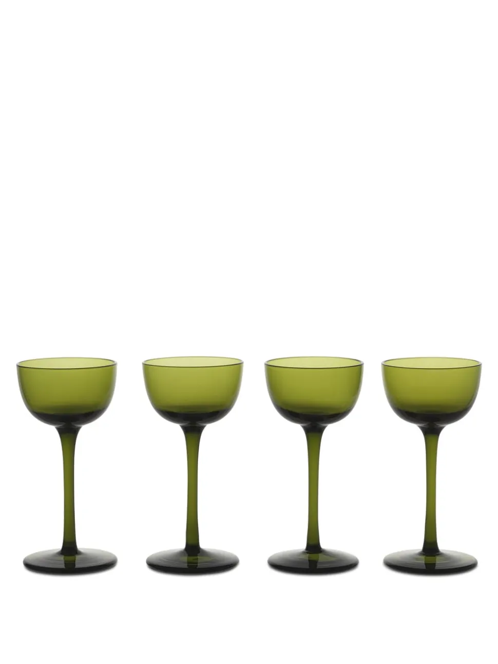 Zarte mundgeblasene Stielgläser mit scharfen Silhouetten von ferm living. Das Set aus vier Host-Likörgläsern macht seinem Namen alle Ehre und ist die ideale Lösung, um Ihren Gästen köstliche Drinks zu servieren – sowohl bei intimen Treffen als auch bei fröhlichen Dinnerpartys.