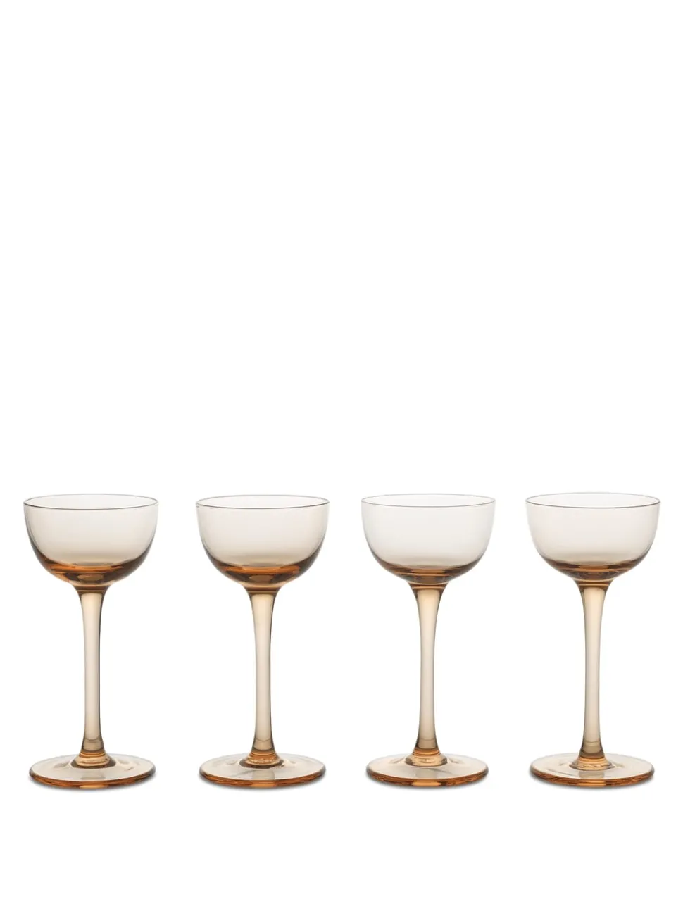 Zarte mundgeblasene Stielgläser mit scharfen Silhouetten von ferm living. Das Set aus vier Host-Likörgläsern macht seinem Namen alle Ehre und ist die ideale Lösung, um Ihren Gästen köstliche Drinks zu servieren – sowohl bei intimen Treffen als auch bei fröhlichen Dinnerpartys.