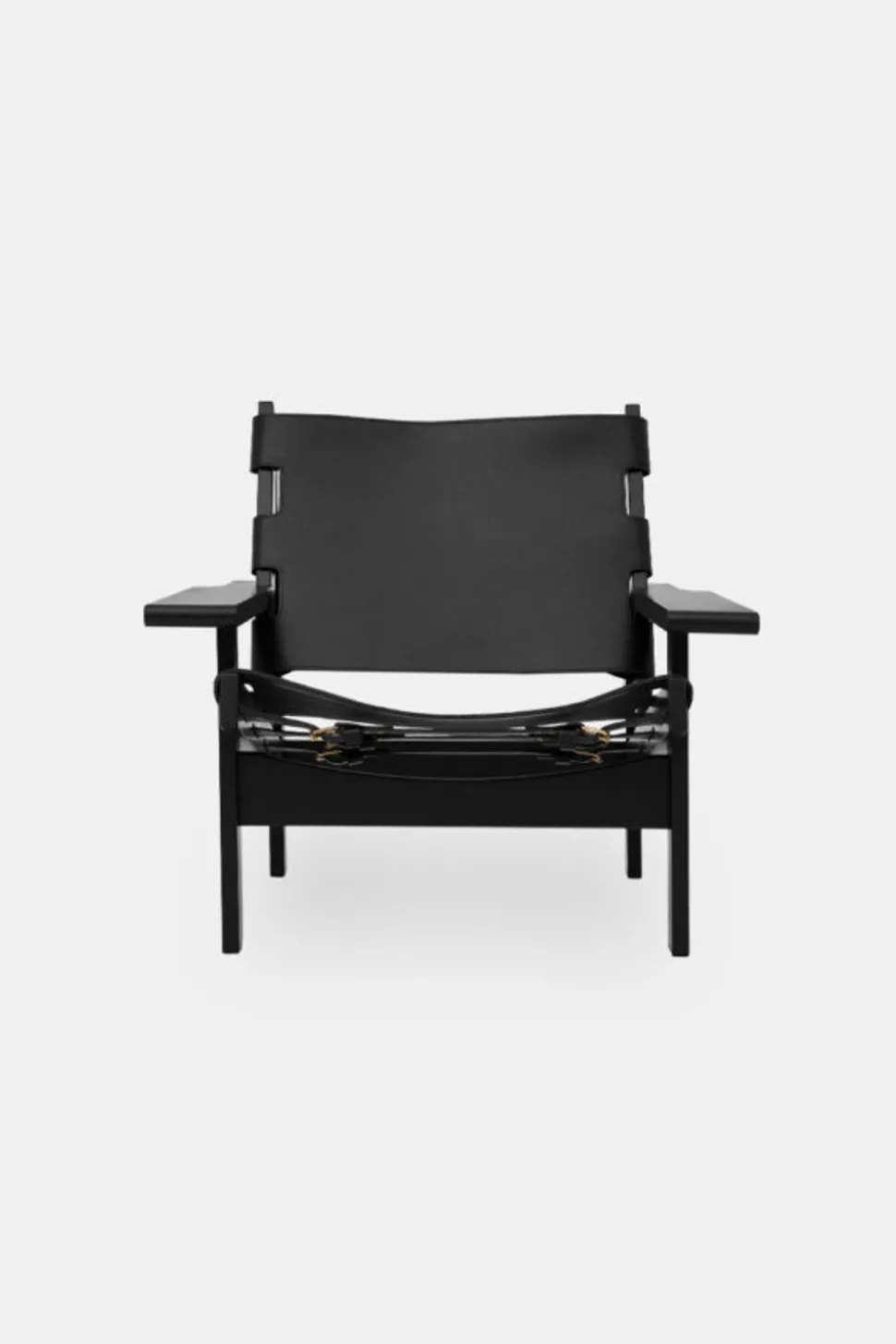 Der solide und zeitlose Holzrahmen ist mit Kernleder befestigt, und die breite Holzarmlehne ist ein gut durchdachtes Designelement, das einen praktischen Platz zum Abstellen eines Glases oder einer Tasse bietet.