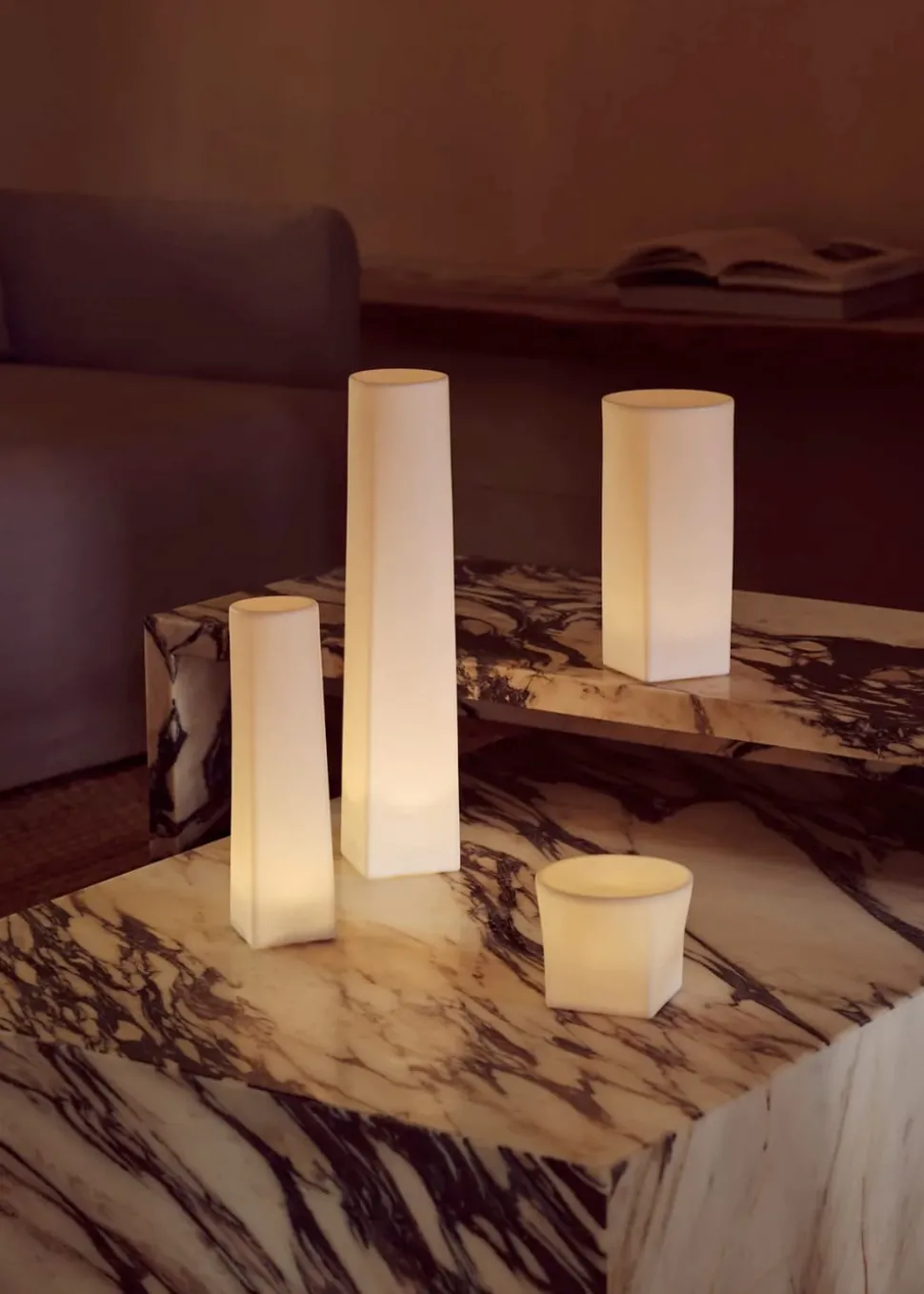 Die Candle Light Collection besteht aus sechs skulpturalen Formen mit einer matten Oberfläche. Jedes Licht kann in drei verschiedenen Stufen gedimmt werden.
