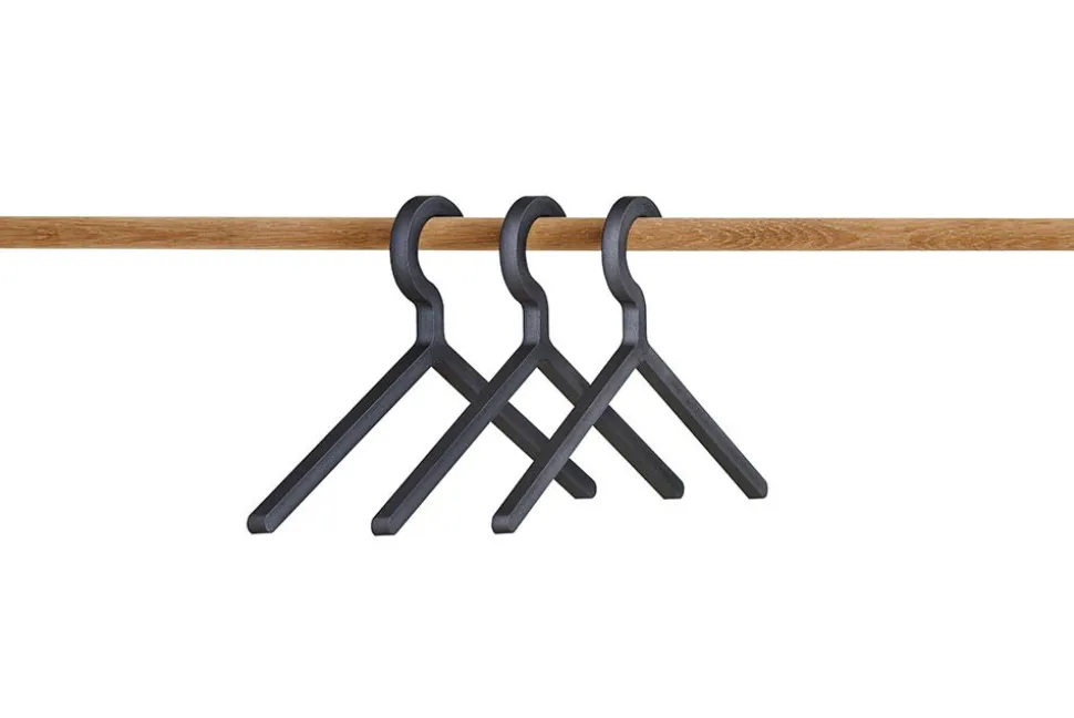 Der Kleiderbügel Illusion wurde von Philip Bro entworfen. Der Name kommt von dem Design, bei dem er durch seine schrägen Winkel wie eine Illusion wirkt. Das sieht man auch, wenn man ihn aus verschiedenen Blickwinkeln betrachtet. So sind die Kleiderbügel optisch schön und gleichzeitig funktional.