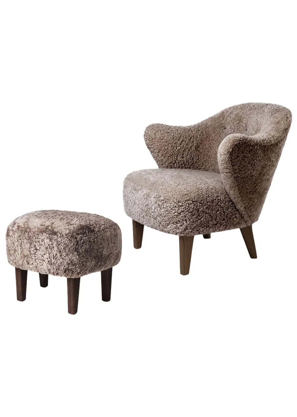 Ingeborg mit Hocker von . Ingeborg wurde ursprünglich 1940 von Flemming Lassen entworfen. Der charmante kleine Stuhl ist nach Flemmings und Mogens Lassens Mutter, der Künstlerin Ingeborg Winding, benannt. Trotz ihrer geringen Größe erhellt Ingeborg jeden Raum mit ihrem Charme und ihrem exklusiven Stil. Der Stuhl ist aus jedem Blickwinkel schön und kann überall im Raum platziert werden, ohne zu viel Platz einzunehmen.