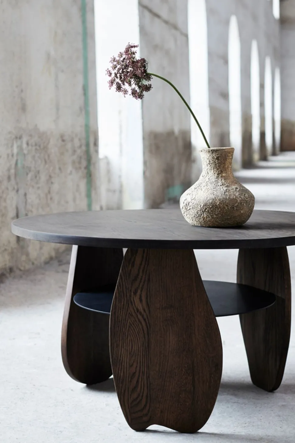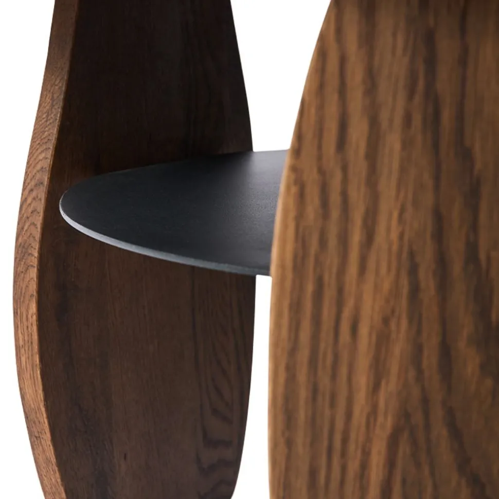 Der Ishi Couchtisch ist von der japanischen Designphilosophie inspiriert. Seine Form ist an Kieselsteine angelehnt, die mit ihren glatten und organischen Formen, die durch das Plätschern von Wellen und Gletschern geformt werden, an Flussufern und Küsten zu finden sind. Der Name „Ishi“ bedeutet Kieselstein auf Japanisch. Der Couchtisch ist mit drei Beinen ausgestattet, von denen jedes eine einzigartige und harmonische Form aufweist. Diese skulpturalen Beine schaffen visuelles Interesse und verwandeln den Couchtisch in ein funktionales Kunstwerk“ in der Einrichtung. Die runde und weiche Form der Tischplatte bringt das Design zusammen und lädt zum gemeinsamen Beisammensein ein. Unter der Tischplatte befindet sich eine schwarz lackierte Metallablage, die wertvollen Stauraum bietet. Der Ishi Couchtisch ist aus Eiche gefertigt, wobei die Maserung des Holzes hervorgehoben wird, bevor es mit einem dunklen Räucheröl behandelt wird, das den Couchtisch schmutzabweisend und damit pflegeleicht macht. Der Couchtisch wird flach verpackt geliefert und ist leicht zu montieren. Maximales Gewicht des Tisches: 50 kg Designer: Naija Ilsøe Nielsen