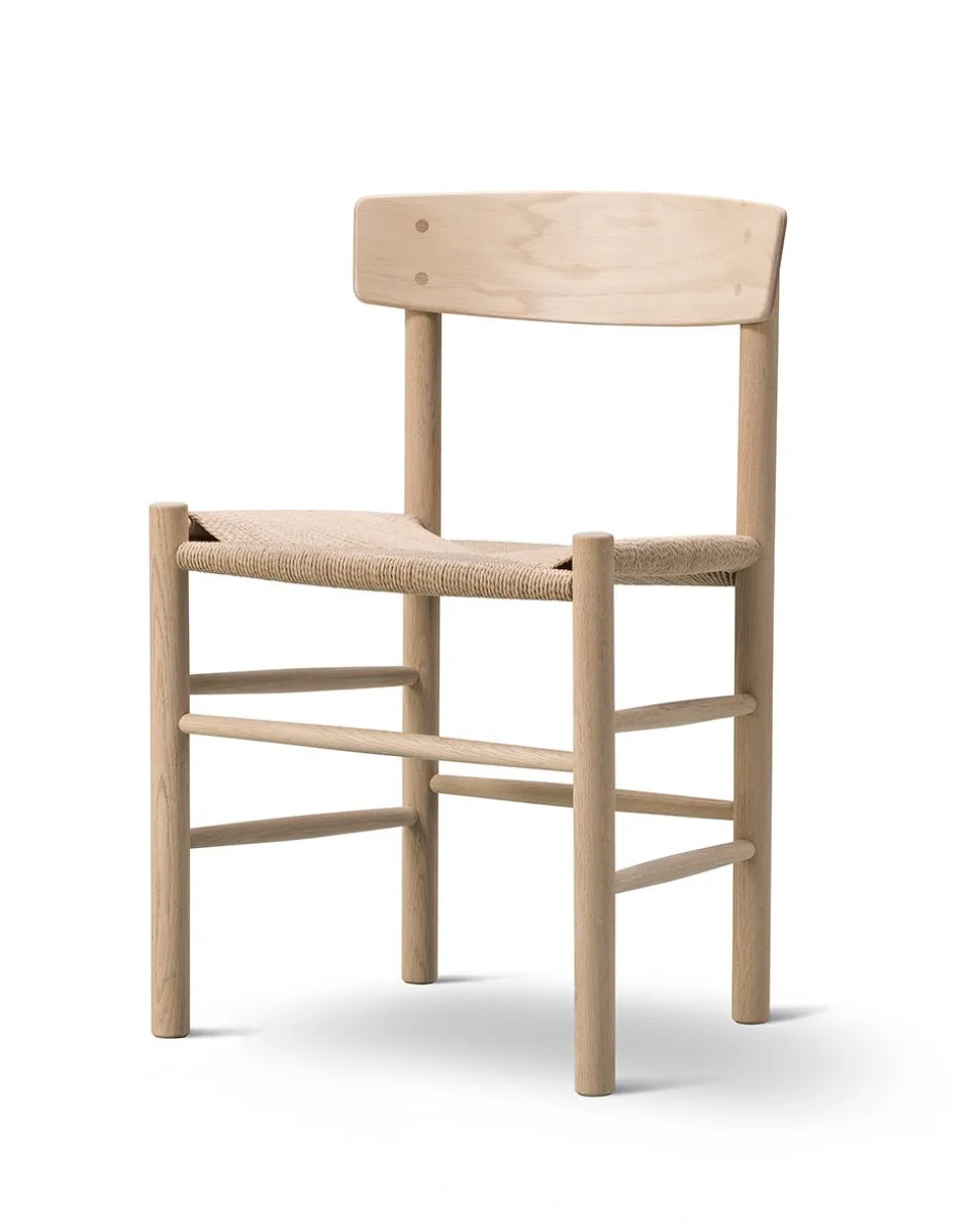 Der J39 Folkestolen, entworfen von dem beliebten Børge Mogensen, ist eines der ikonischsten Designs der dänischen Möbelarchitektur und eines der Stücke, die das moderne dänische Design weiterhin inspirieren. Der Stuhl hat seinen Kultstatus durch seine Vielseitigkeit und sein einfaches, aber perfektes Design erlangt und ist heute besser bekannt als der Stuhl des Volkes“. Seine Vielseitigkeit ist generations- und einrichtungsübergreifend, sowohl in Privathäusern als auch in öffentlichen Räumen.